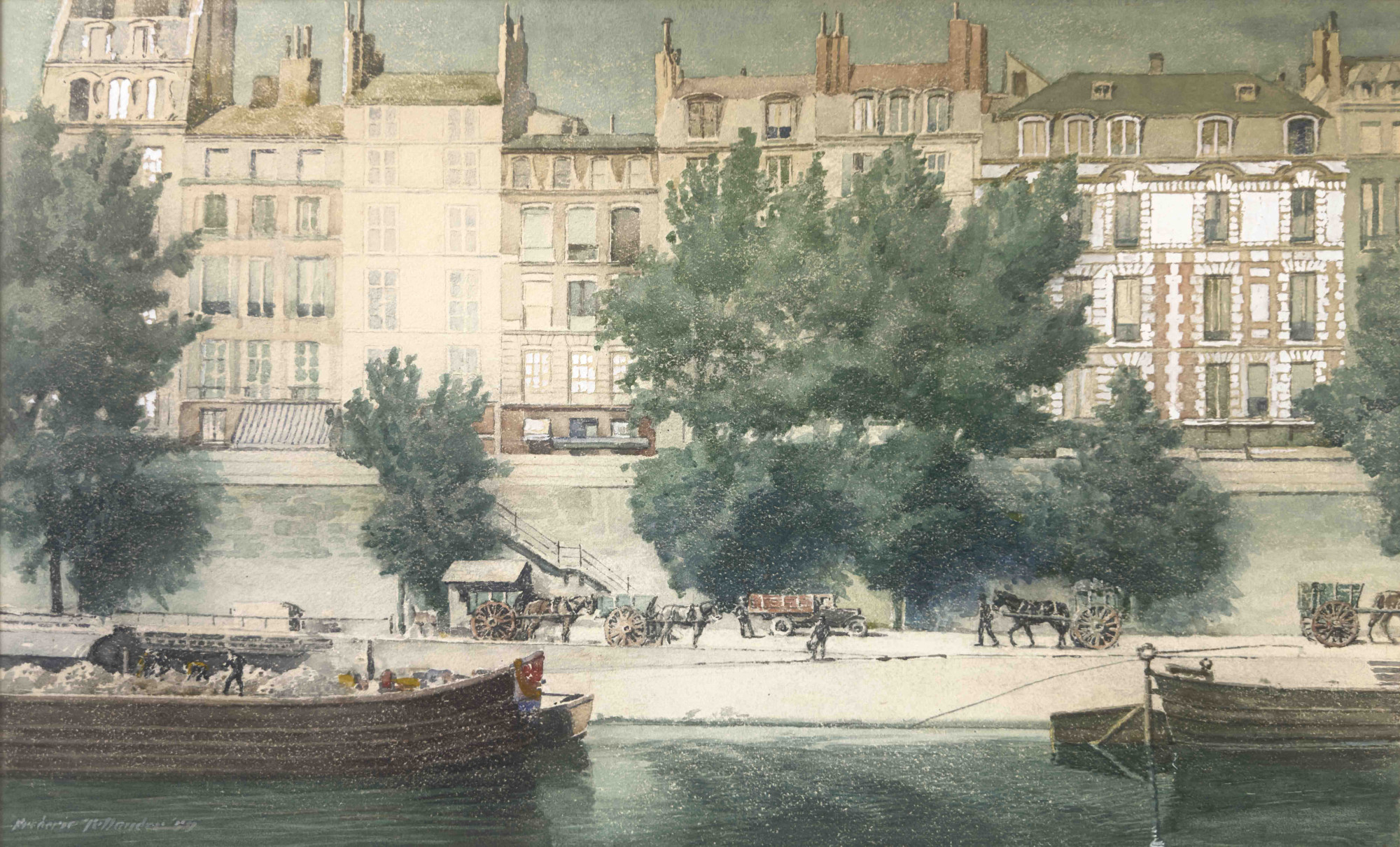 watercolor on Whatman drawing board sight: 16 1/2 x 27 inches signed lower left