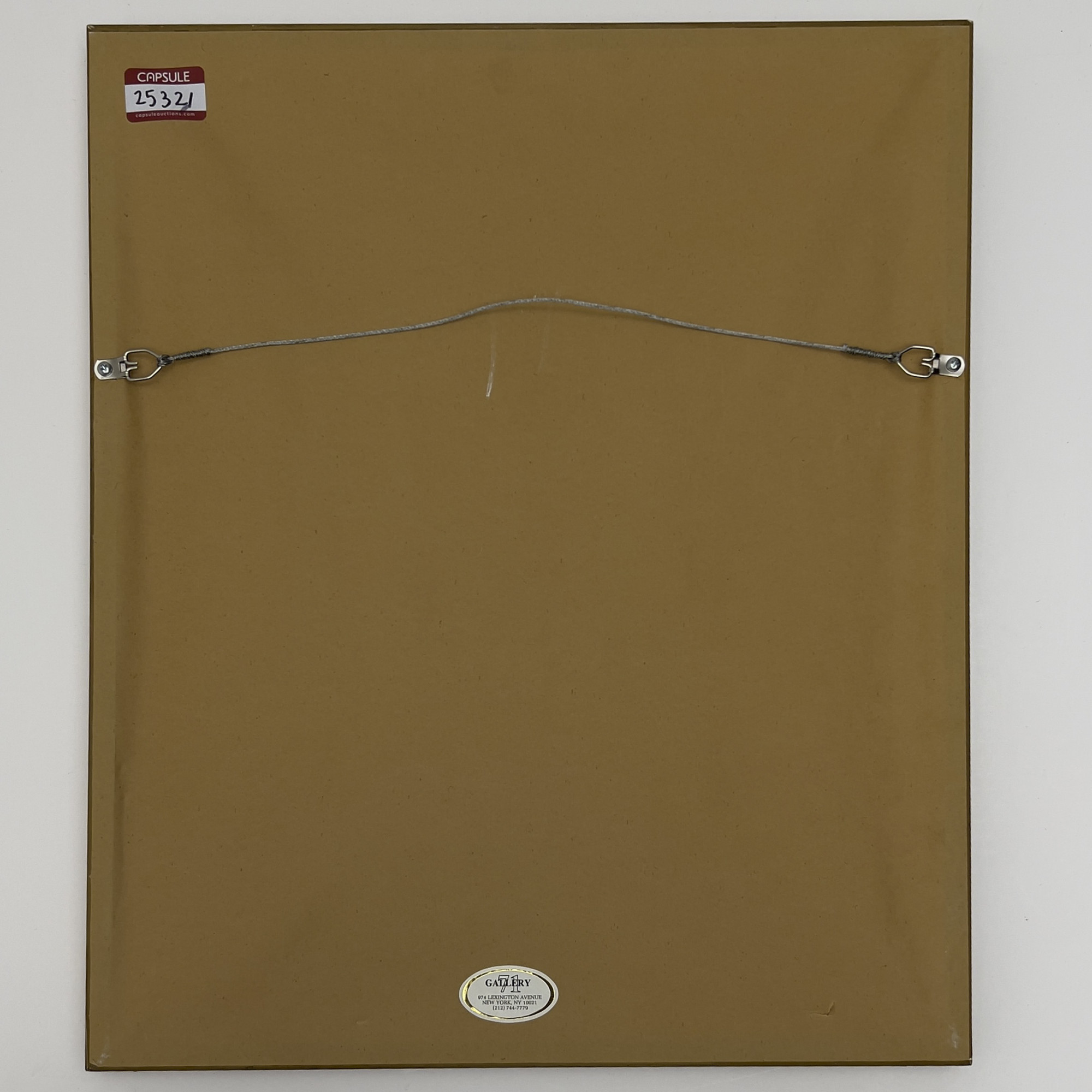 Art has not been examined out of the frame unless otherwise stated. Frames, lampshades, or items described as “supplementary” are not considered integral to the value of the lot and are excluded from condition assessments. This includes any mat, mounting, glazing, hanging apparatus, case, box, or stand. Timepiece movements, lighting elements and items with mechanical or electrical components have not been thoroughly tested and are not covered under warranty by Capsule.
