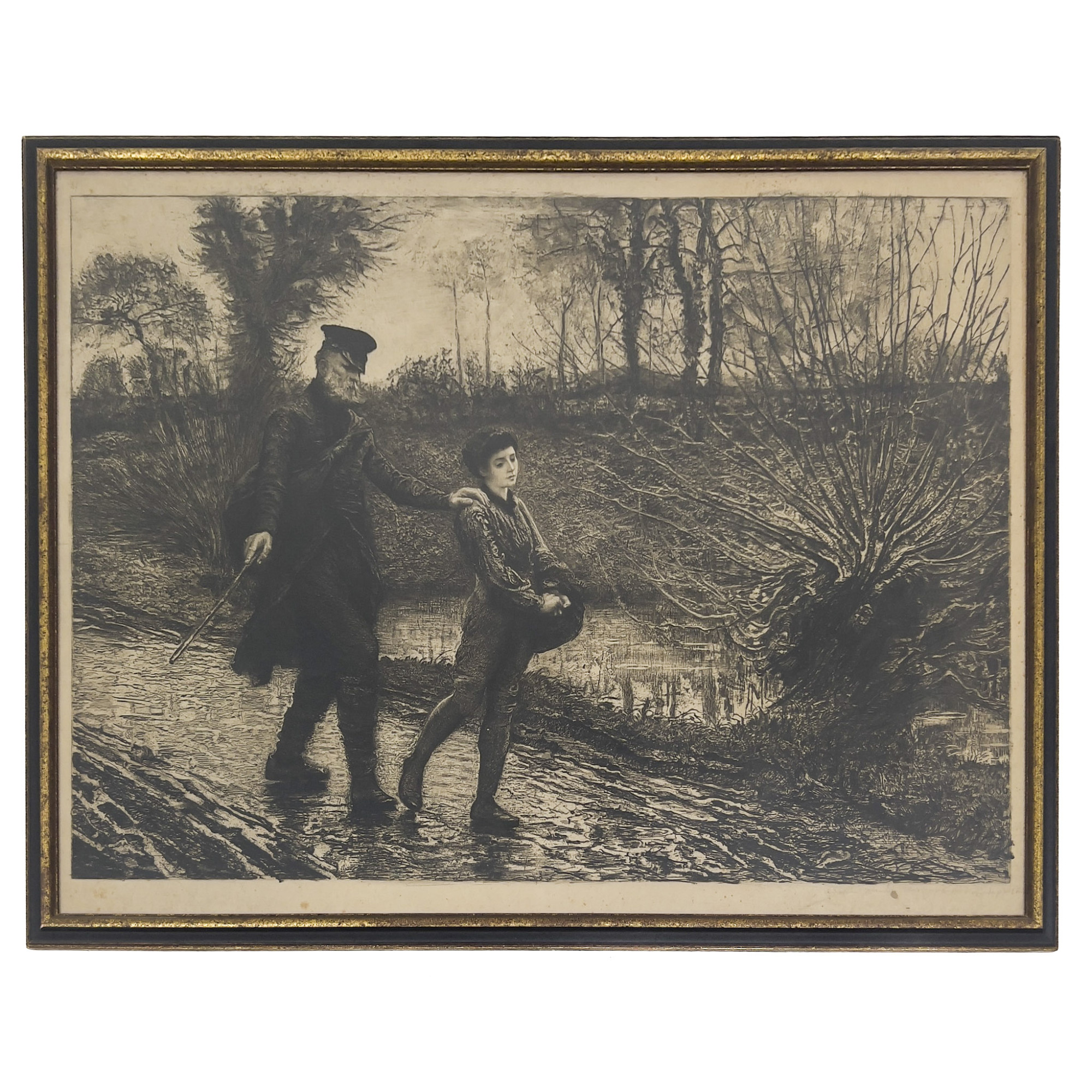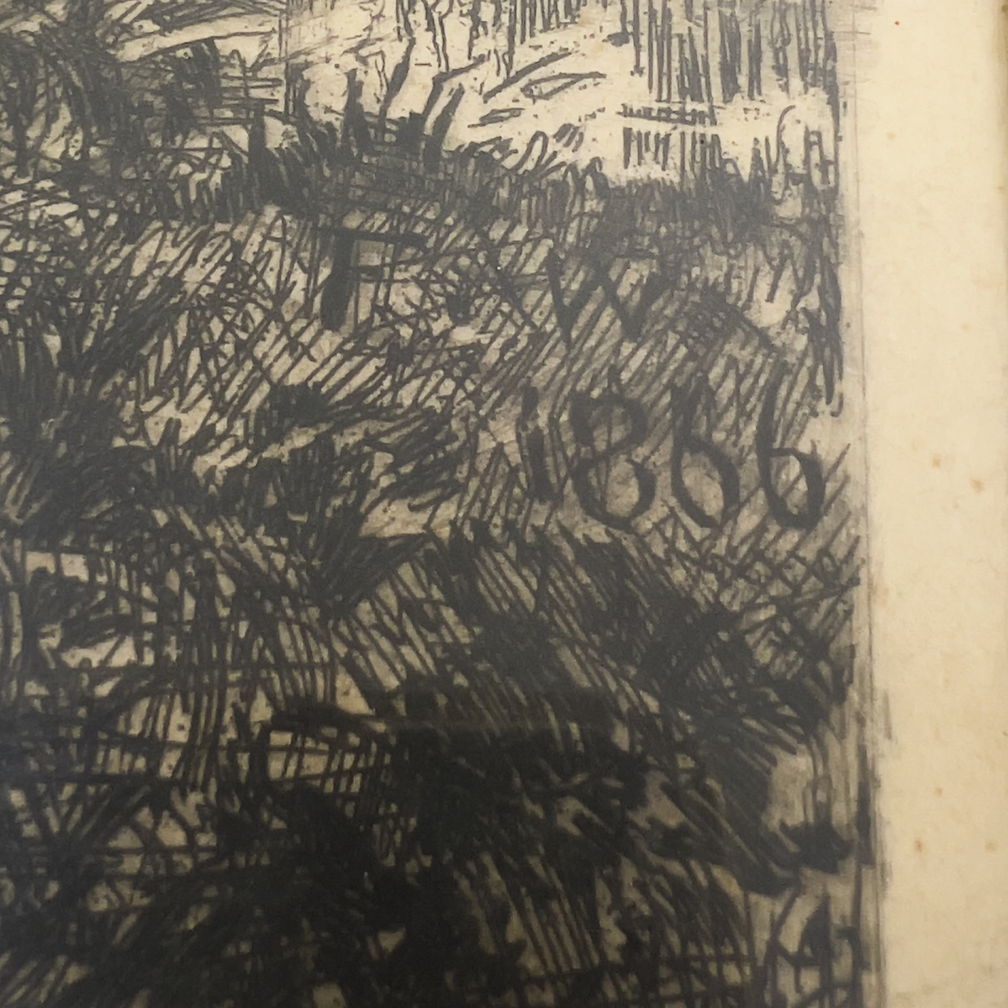 initialed F.W. and dated in matrix lower right, indistinct writing lower right margin