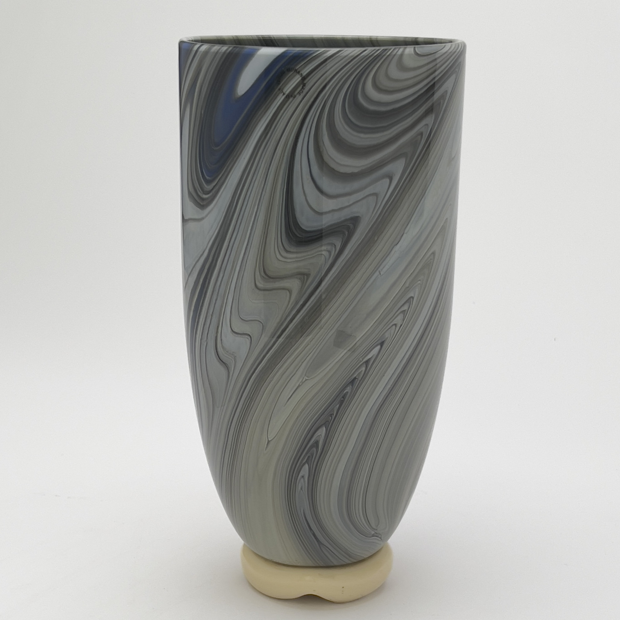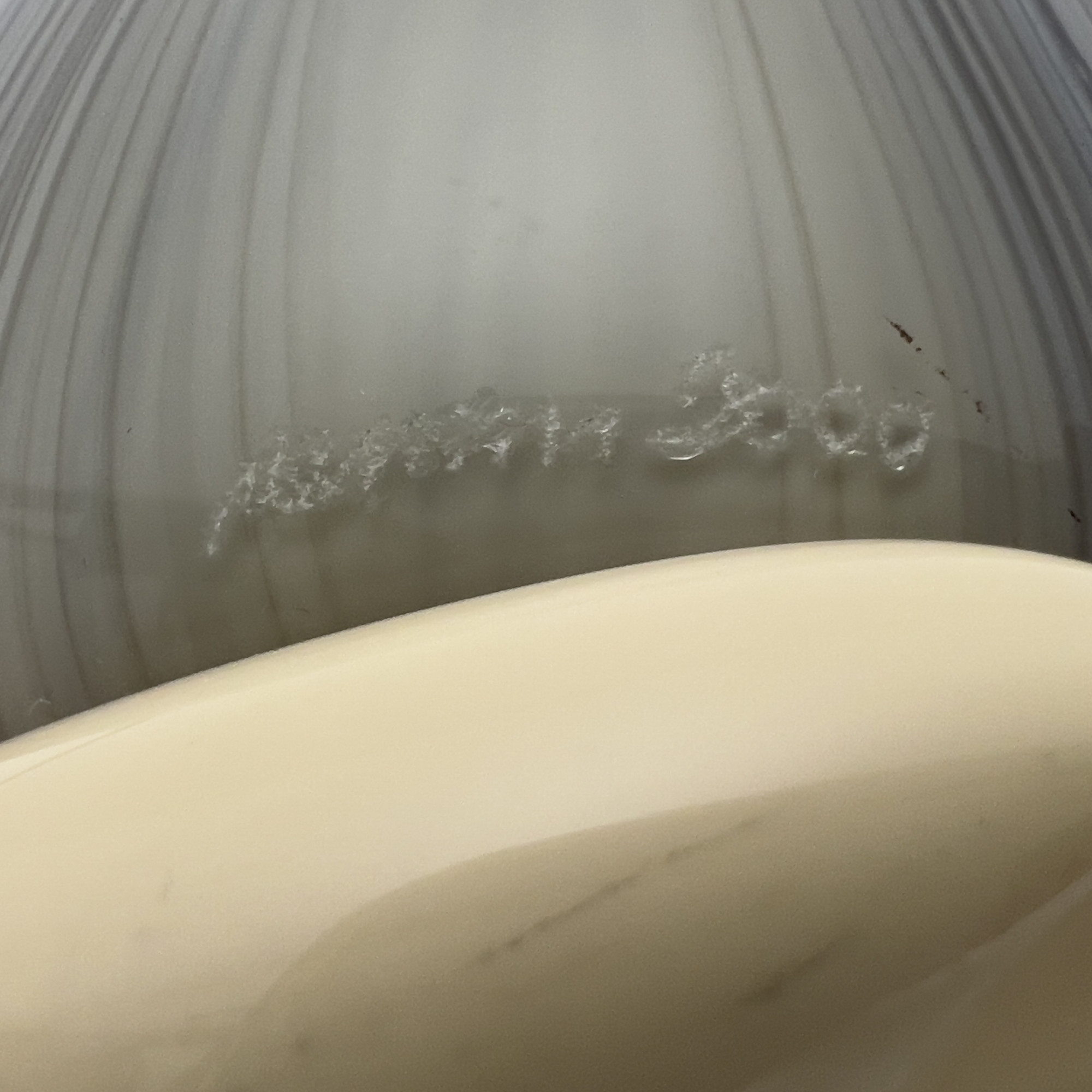 marbled glass in shades of gray on a cream white base with Venini Murano sticker