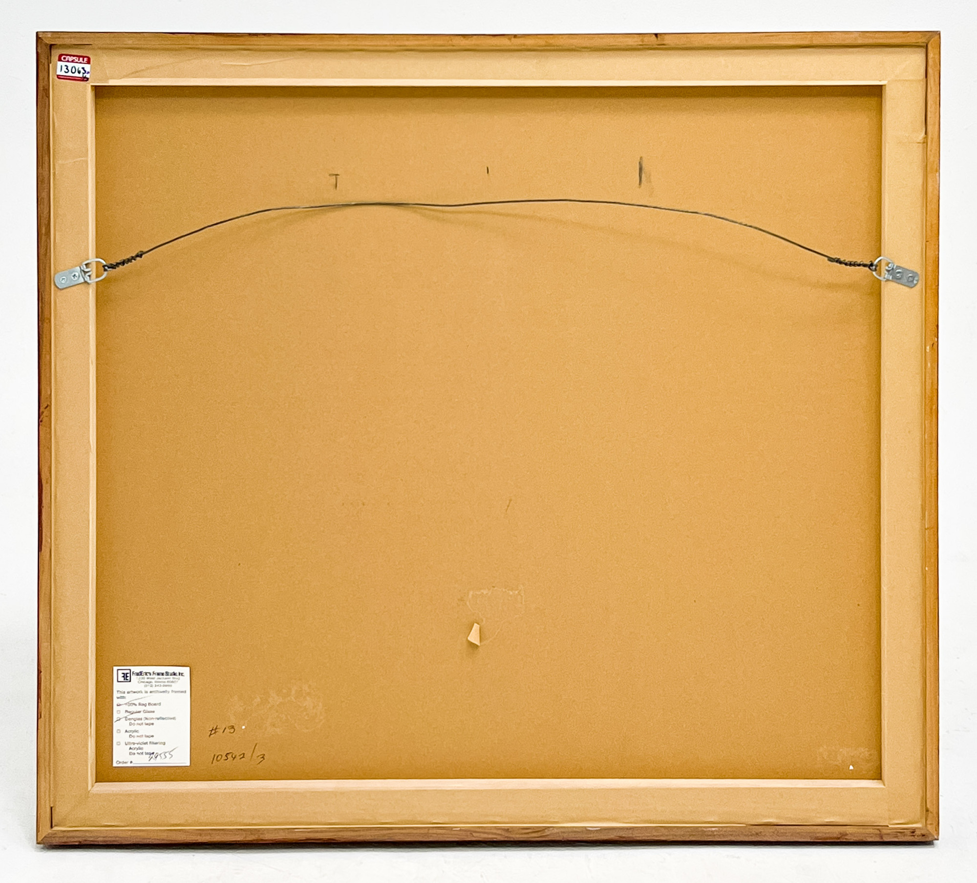 Art has not been examined out of the frame unless otherwise stated. Frames, lampshades, or items described as “supplementary” are not considered integral to the value of the lot and are excluded from condition assessments. This includes any mat, mounting, glazing, hanging apparatus, case, box, or stand. Timepiece movements, lighting elements and items with mechanical or electrical components have not been thoroughly tested and are not covered under warranty by Capsule.