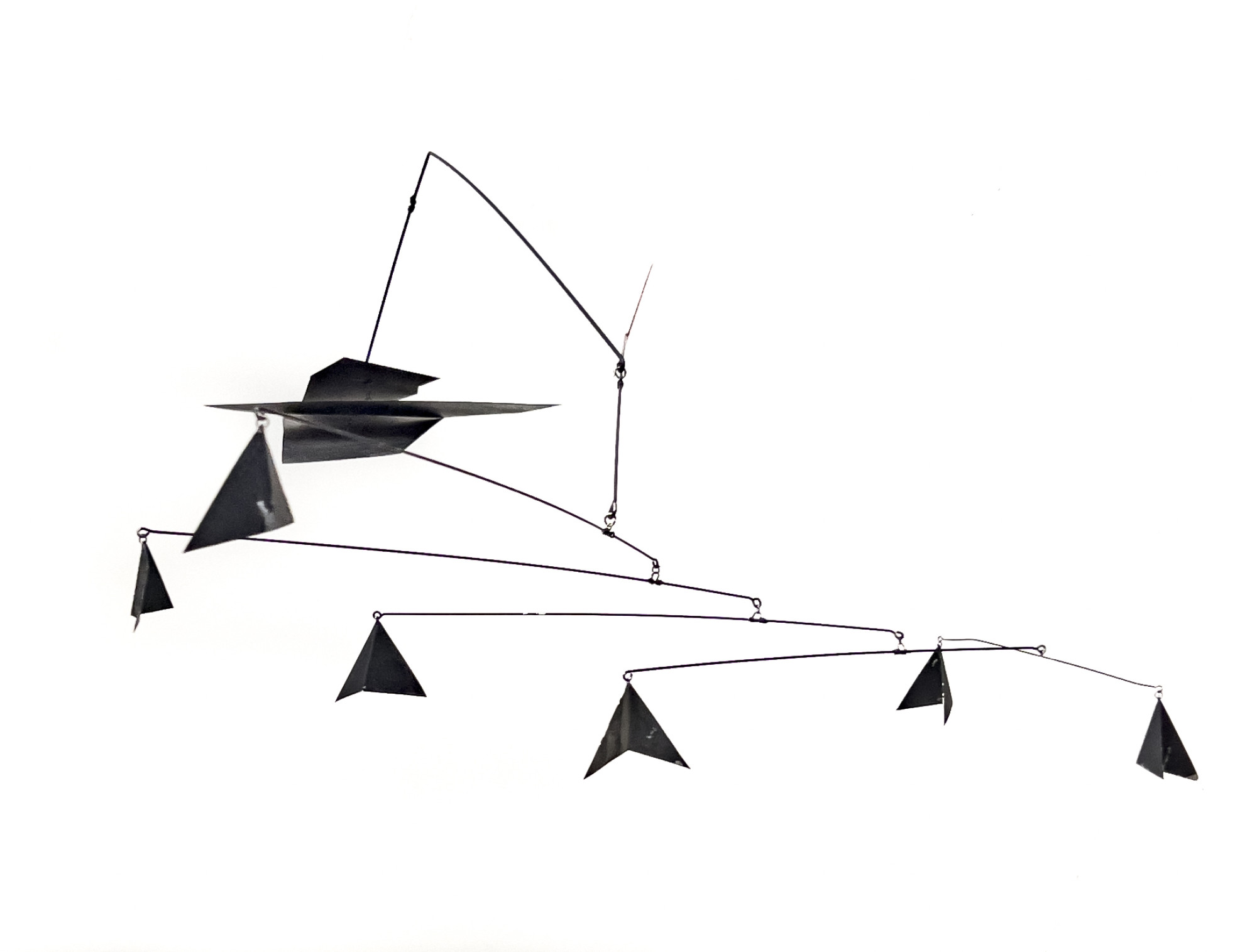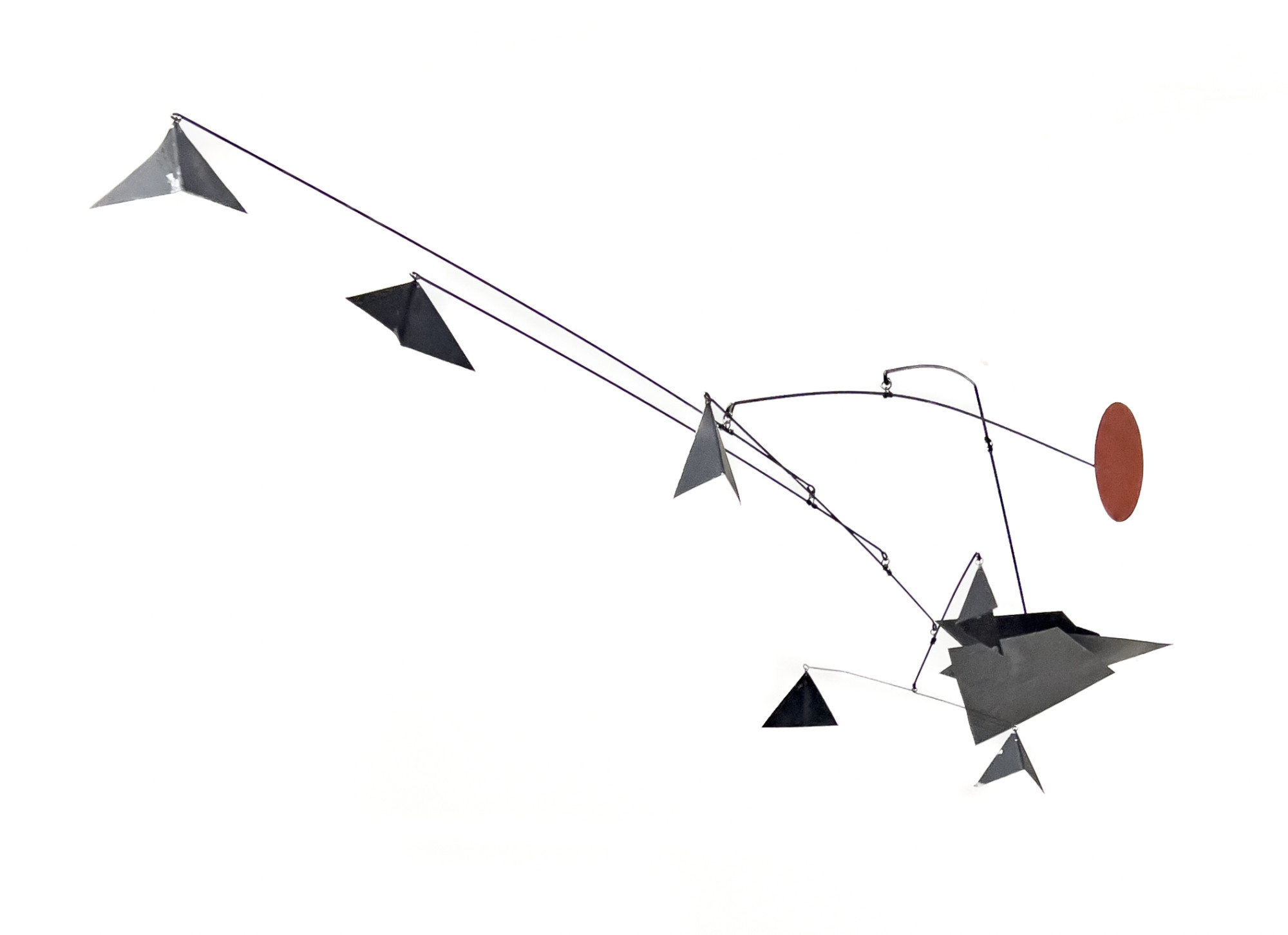 in the style of Arthur Bauman, a kinetic abstract mobile in red and black painted metal in the style of Arthur Bauman