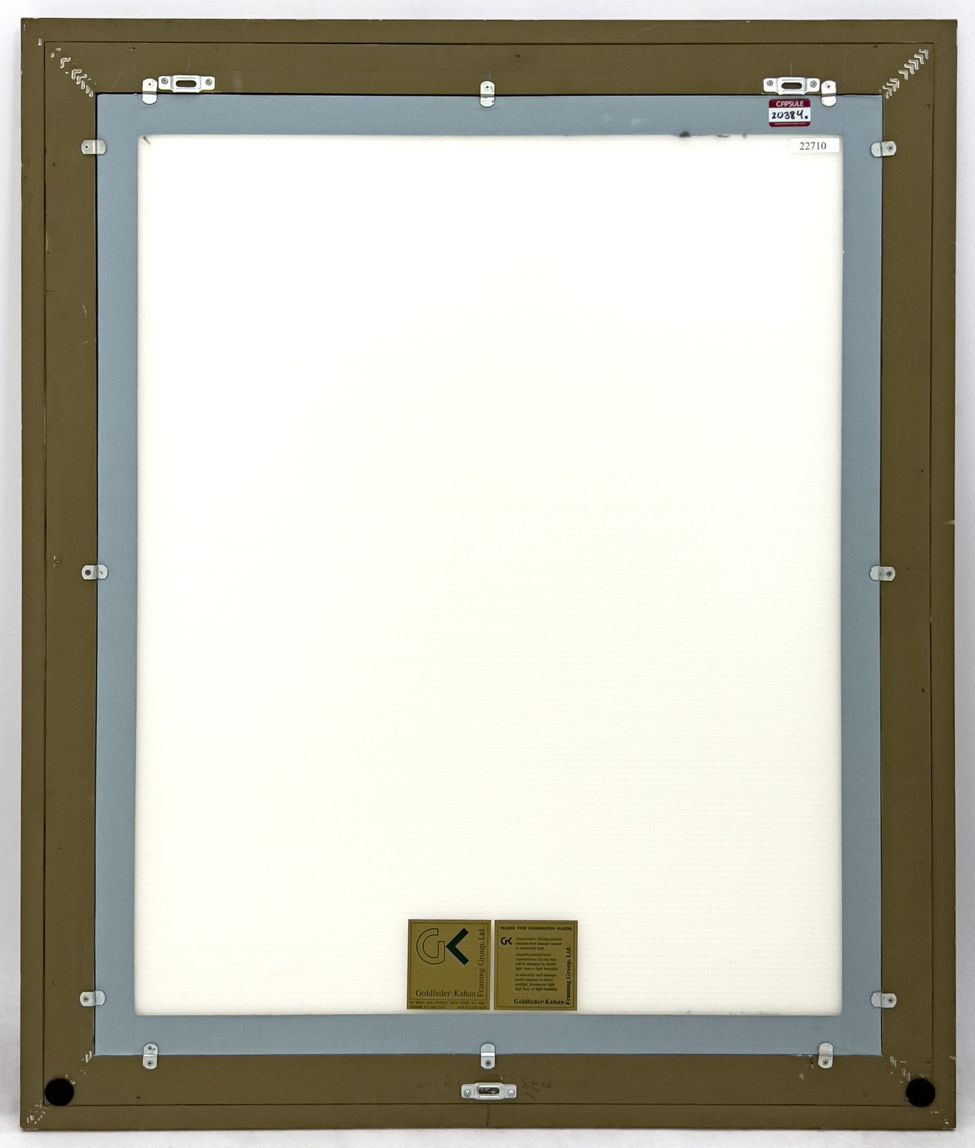 Art has not been examined out of the frame unless otherwise stated. Frames, lampshades, or items described as “supplementary” are not considered integral to the value of the lot and are excluded from condition assessments. This includes any mat, mounting, glazing, hanging apparatus, case, box, or stand. Timepiece movements, lighting elements and items with mechanical or electrical components have not been thoroughly tested and are not covered under warranty by Capsule.