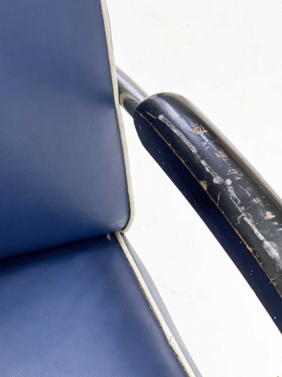 with signs of light wear, including staining and abrasions to faux leather upholstery and abrasions to the arms