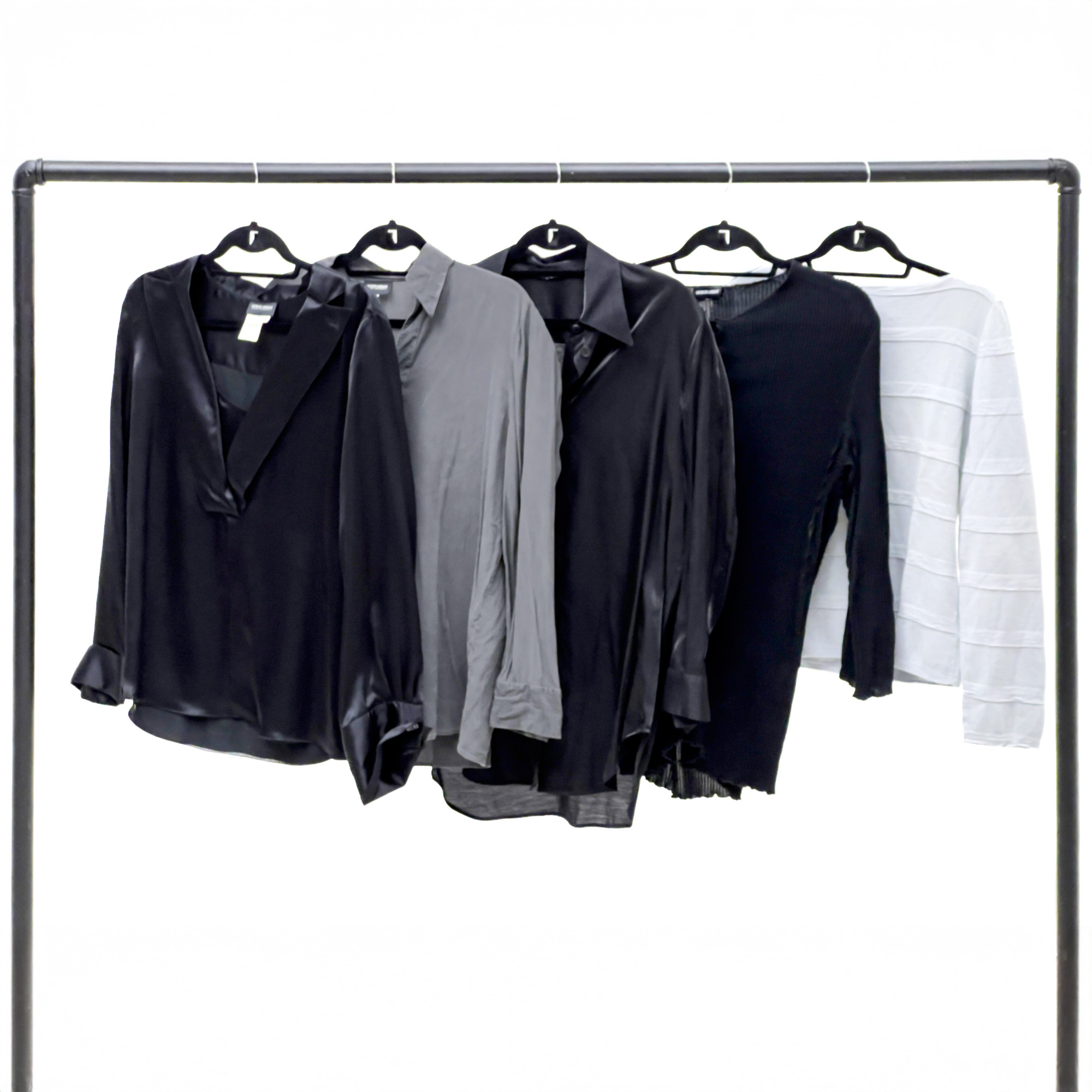 Page navigation Lot 381 Black and Gray Tops, Group of 5