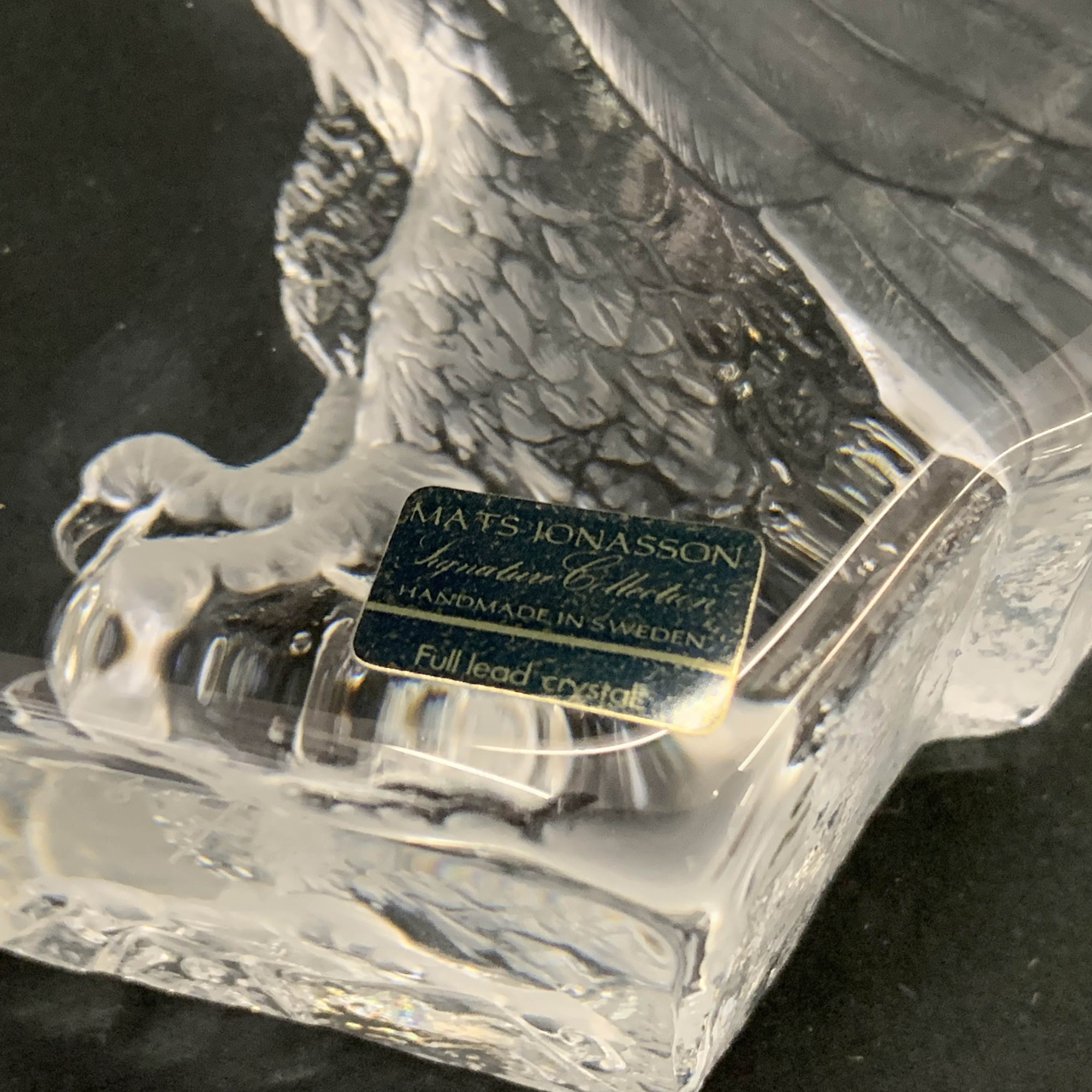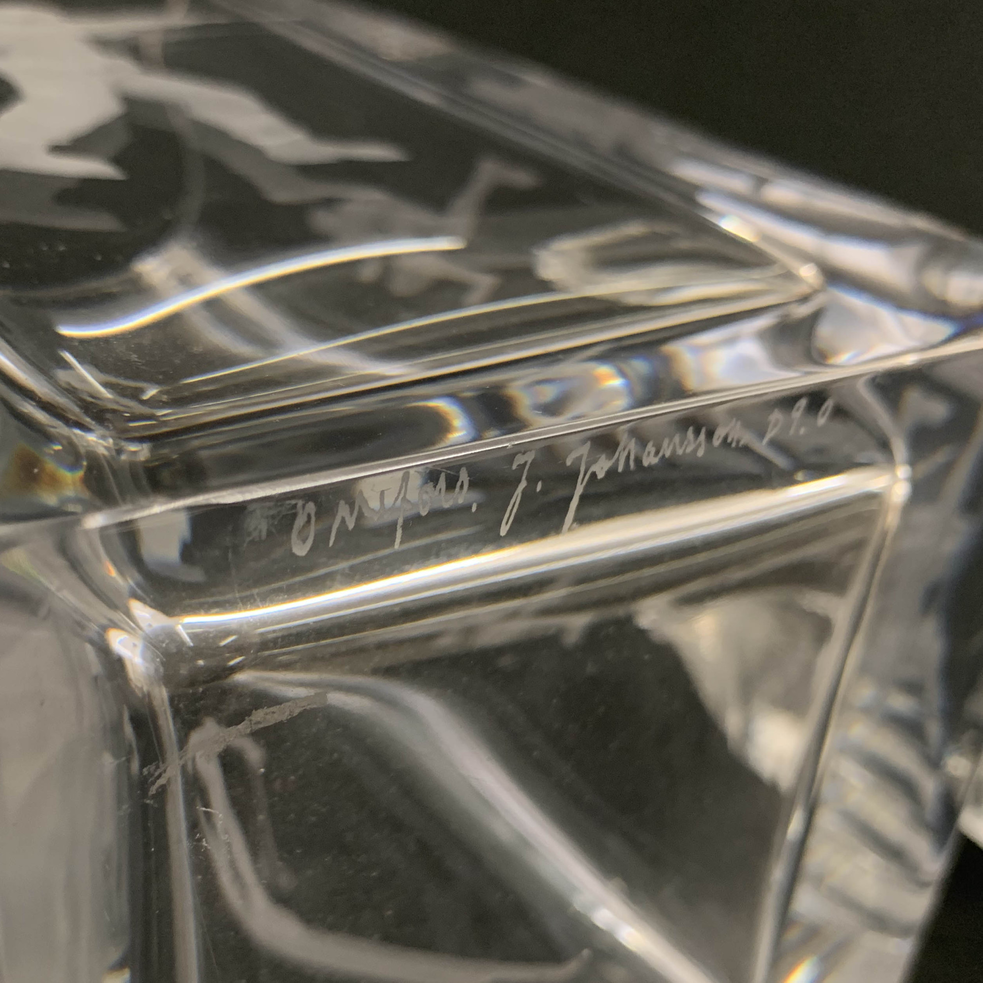 two clear and frosted crystal, one clear and frosted glass height (tallest): 9 1/2 inches signed Orrefors J. Johansson D 9.0, Mats Jonasson 283/975 1984, one with makers mark 'GERMANY:
