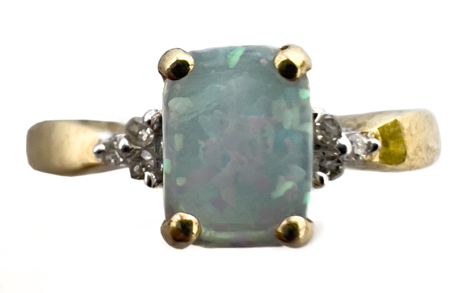 Gold Opal Earrings, Opal and Diamond Ring, and Cameo Pendant