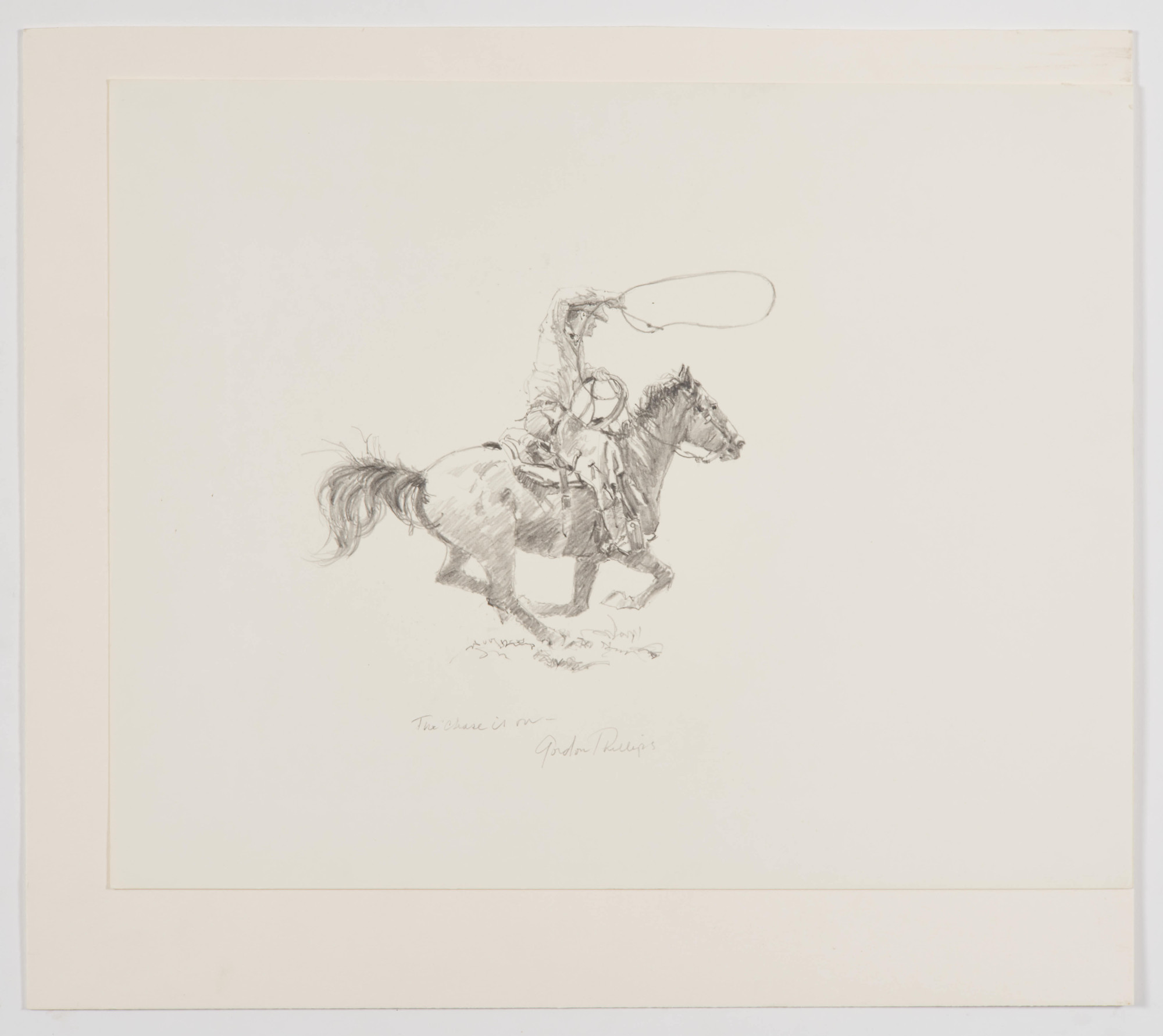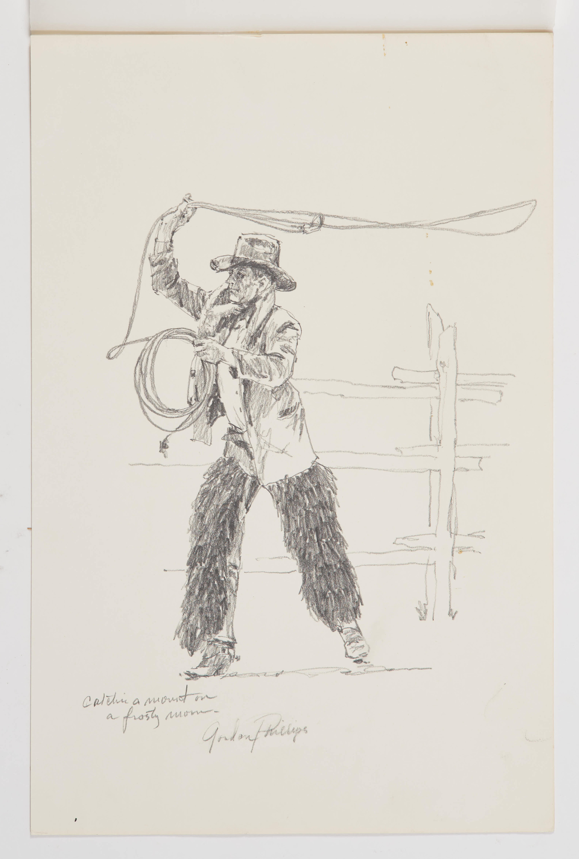 Page navigation Lot 187 Group, four (4) sketches of cowboys with lassos