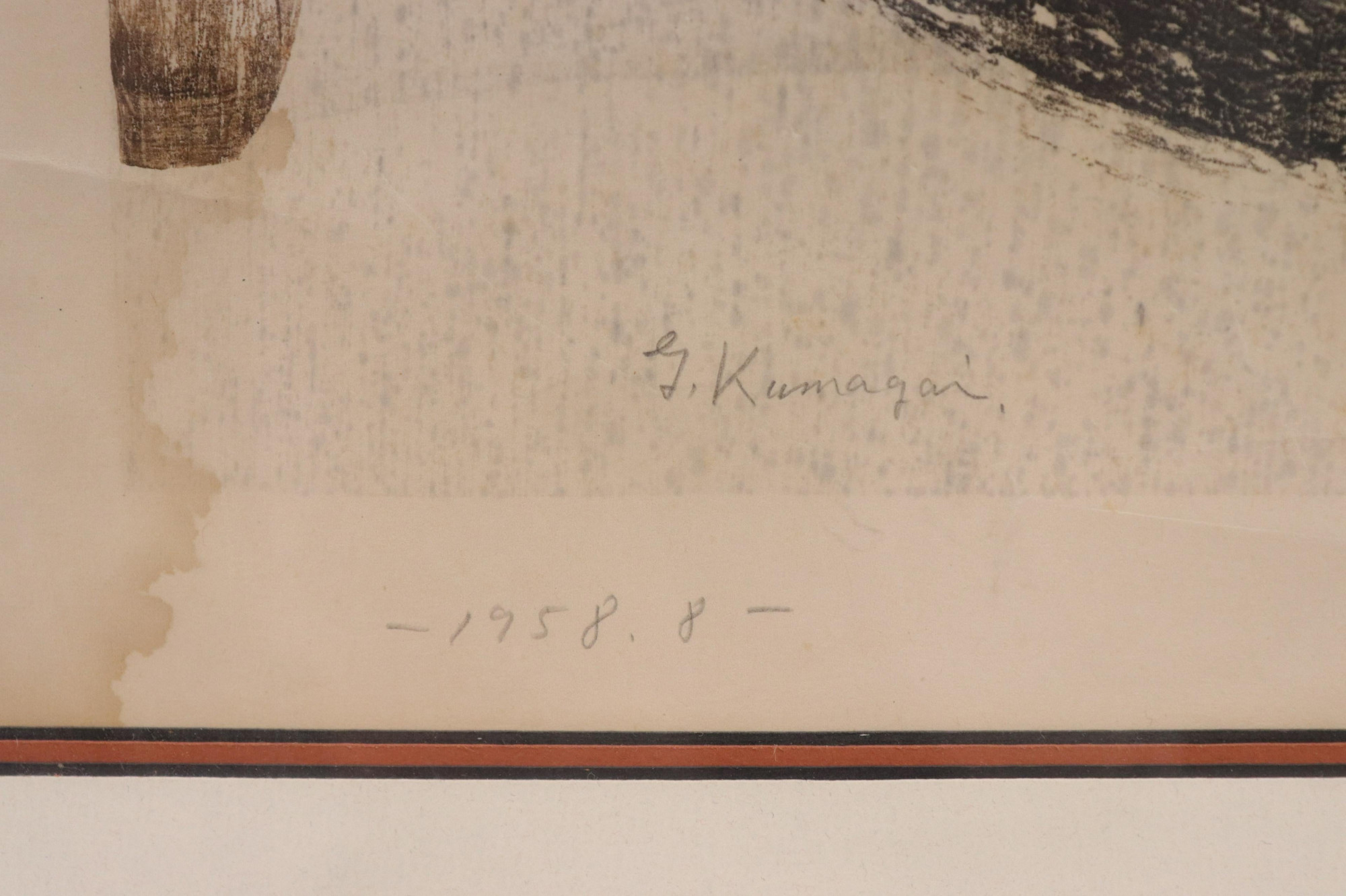 Gorou Kumagai, Japanese,1932-2017, color woodblock print, signed numbered and dated Dimensions: 19 1/4 x 15 1/4, framed 30 1/2 x 26 Property from a Kent, CT estate (QBRA9162)(MM)