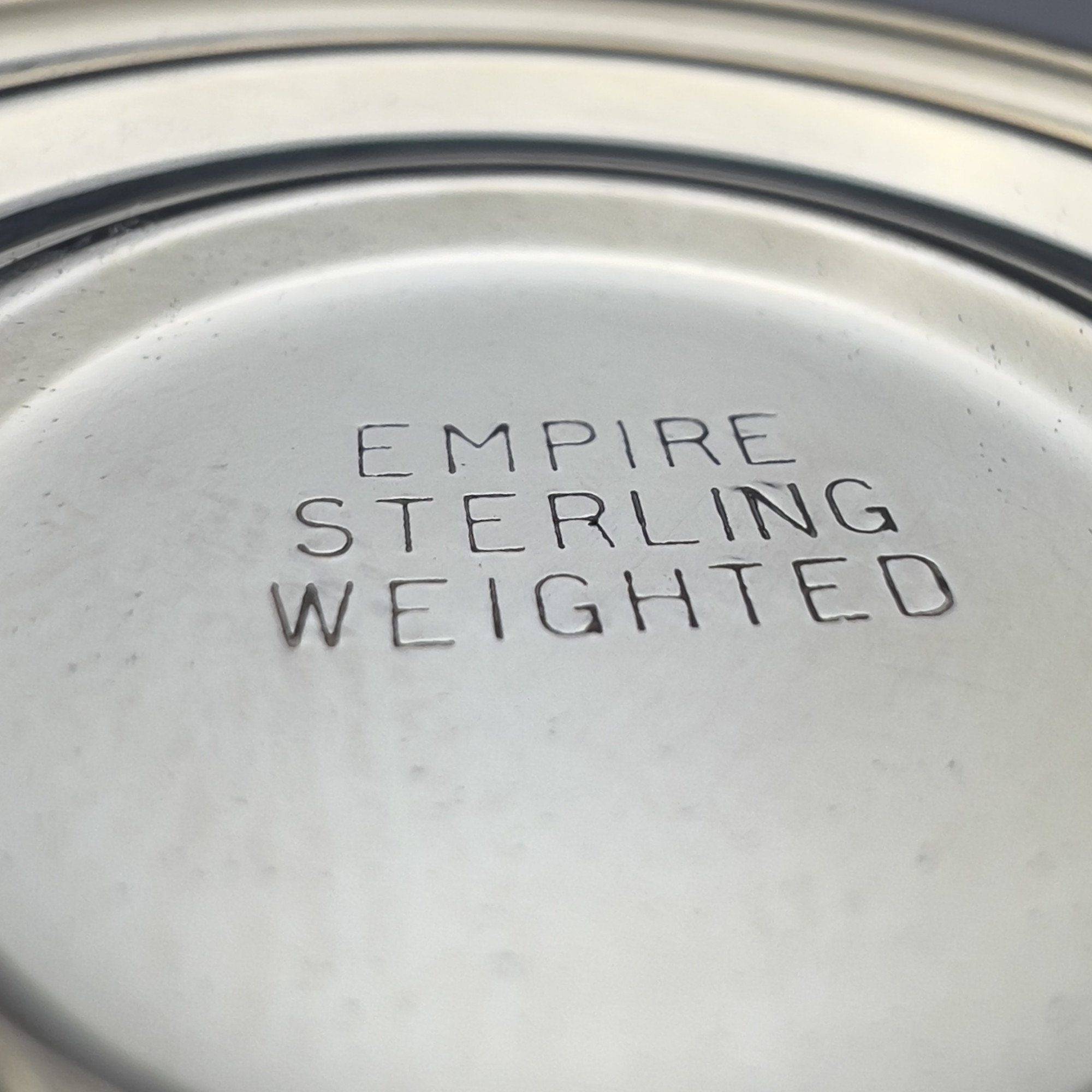 Dents, tarnish, and wax residue on candlesticks, bud vase is new in box