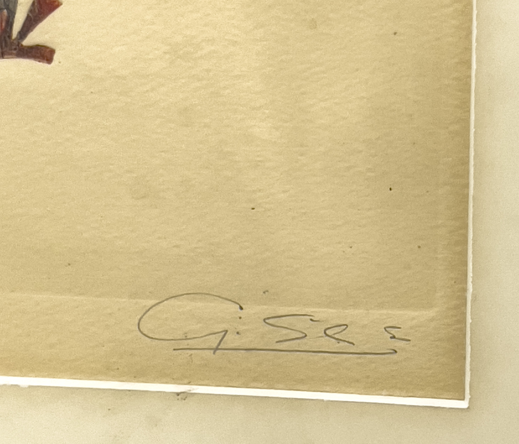 colored etching plate (larger): 11 1/4 x 17 3/4 inches signed lower right
