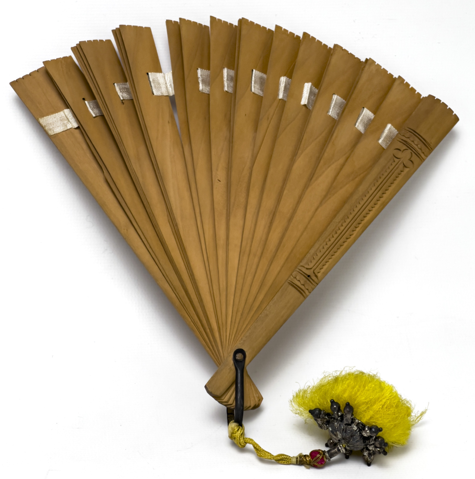 Comprising hardstone beaded necklaces of varying lengths and stones, bracelets, and folding fan