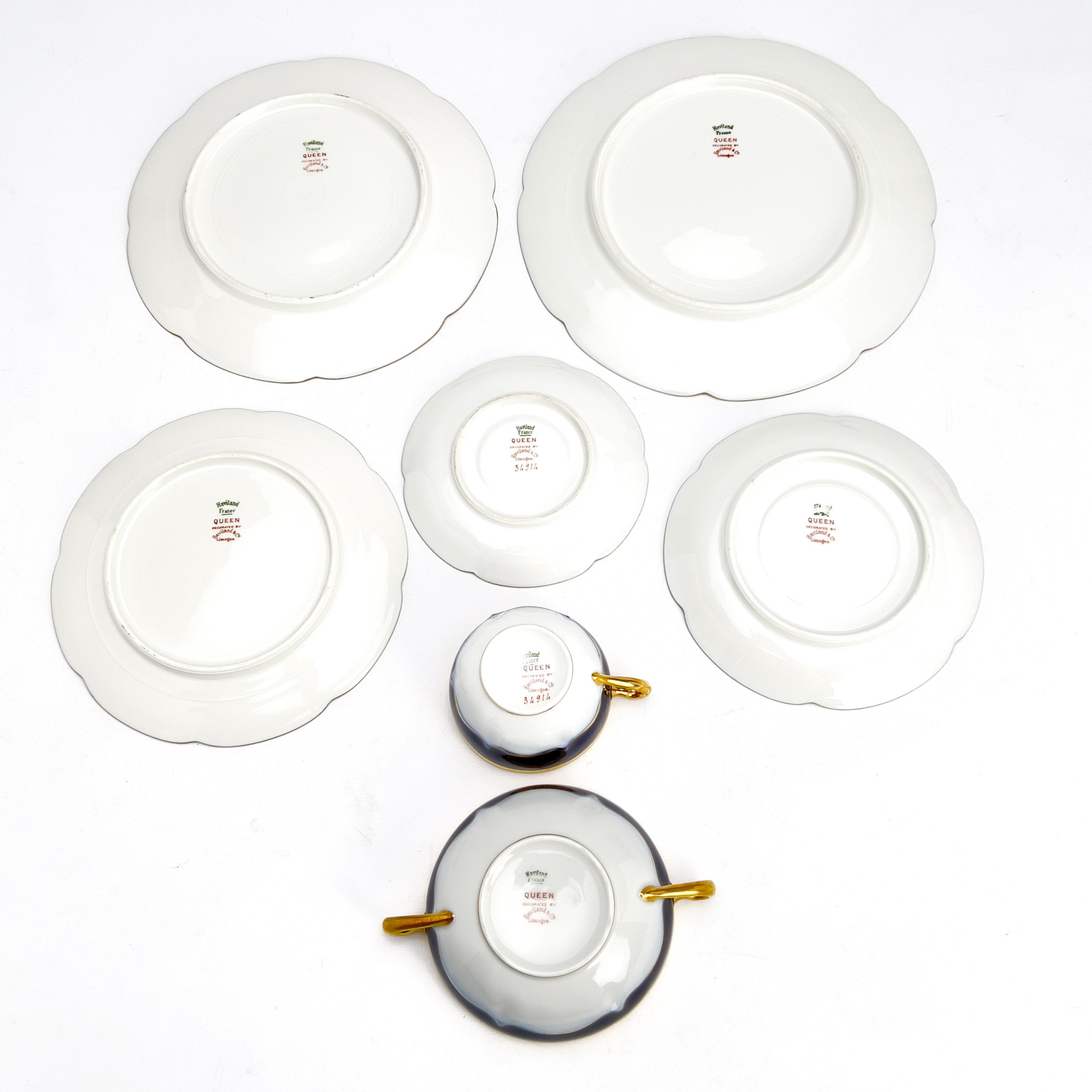 Limoges China Queen Pattern Partial Service, Gold and Blue