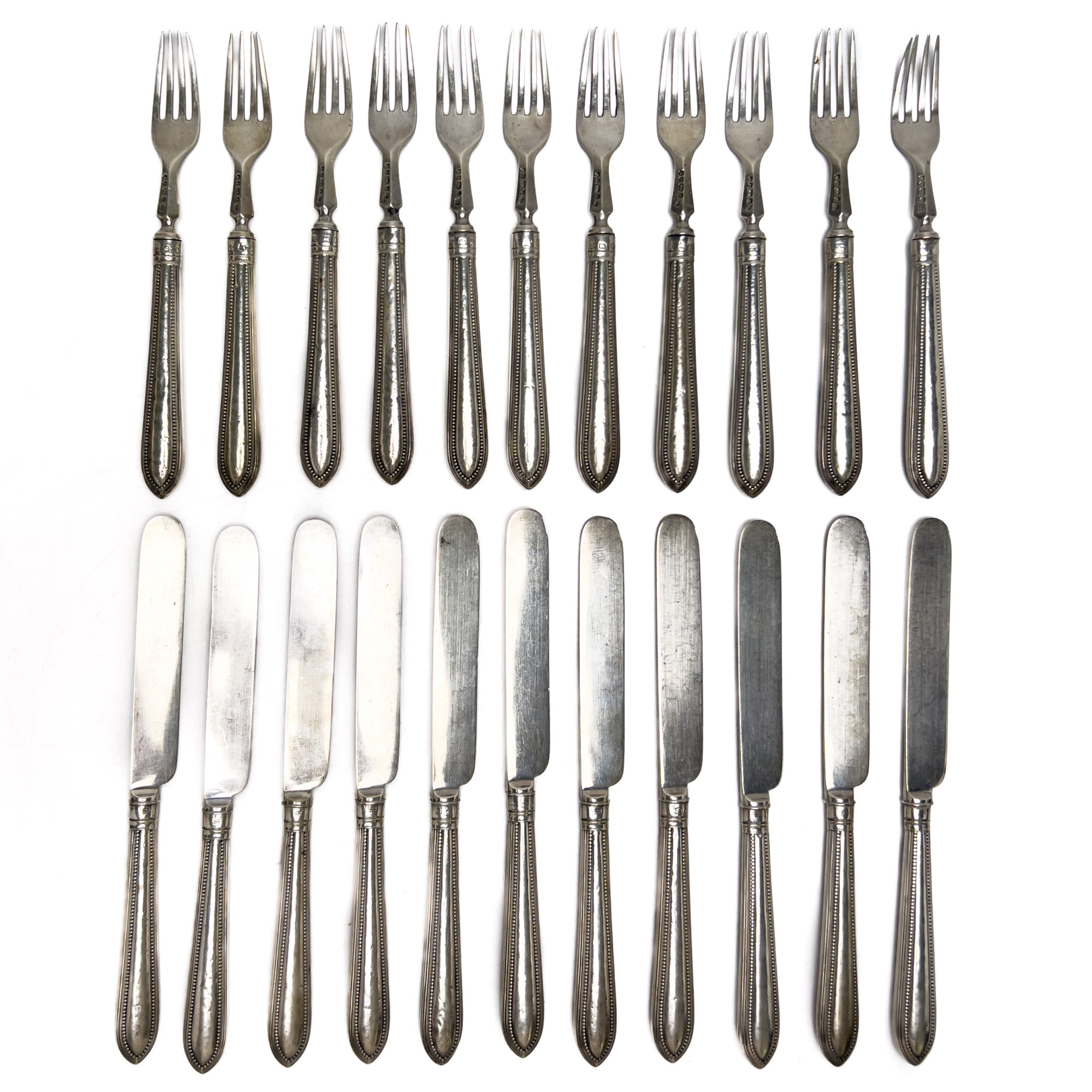 Comprising 11 knives and 11 forks all in sterling silver with weighted handles