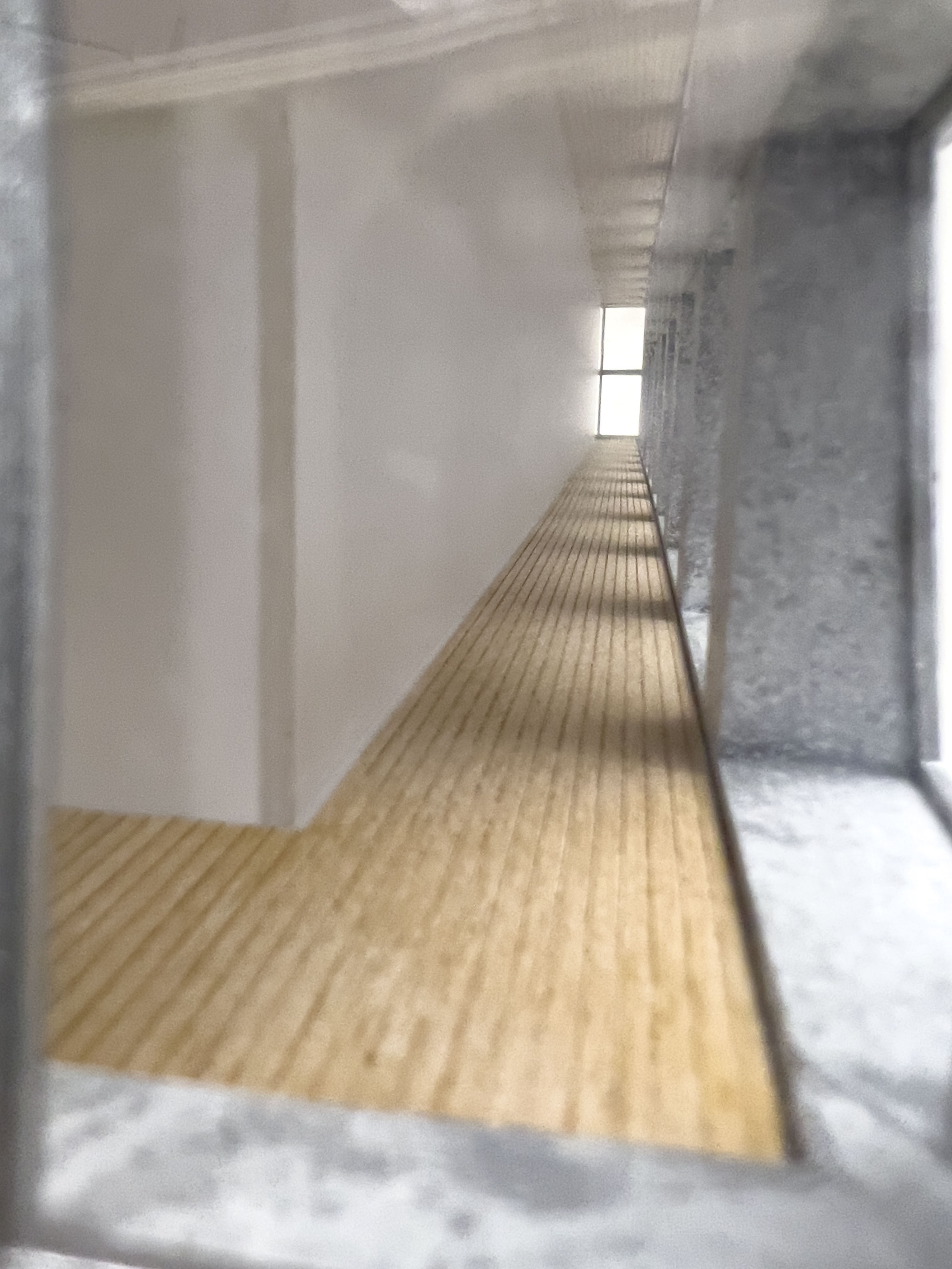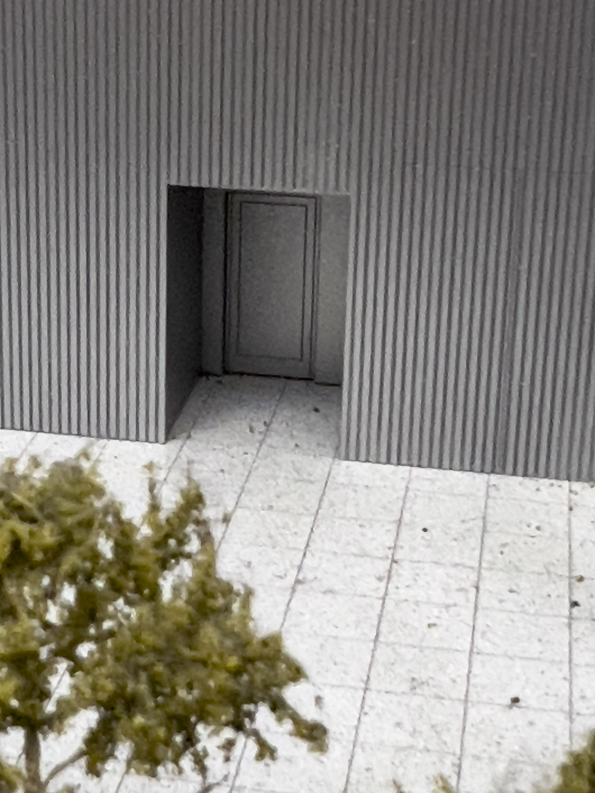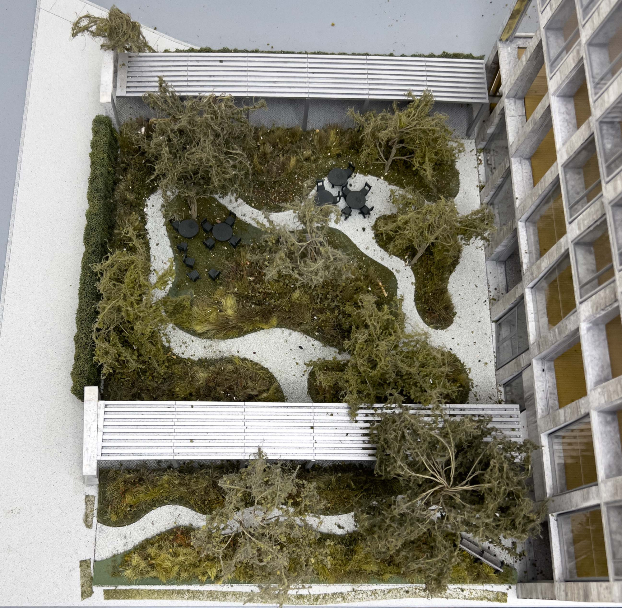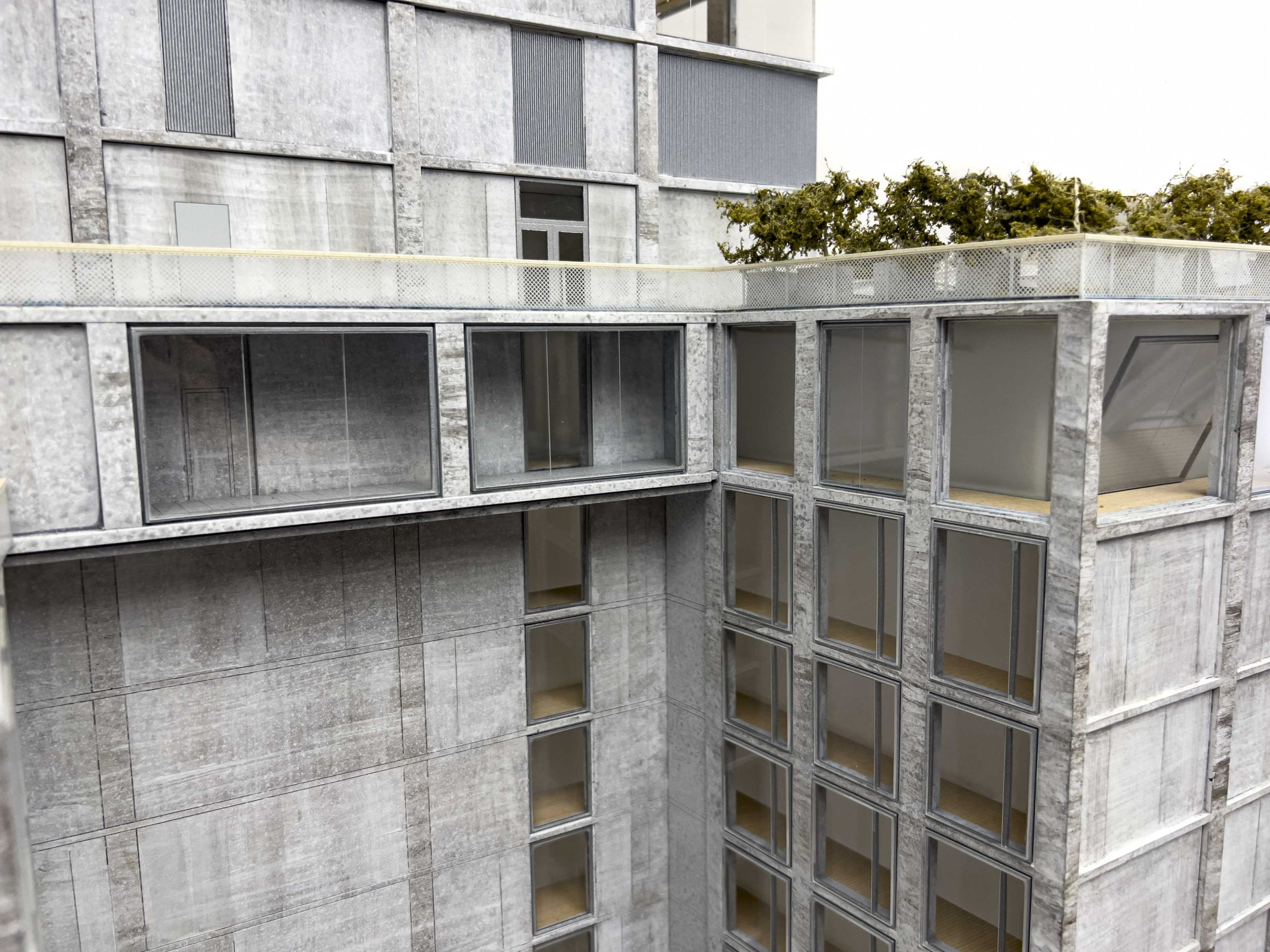 Architectural model of 409 215 Chrystie Street, NYC building, resting on laminated wood base, with LED lights and wiring system to underside