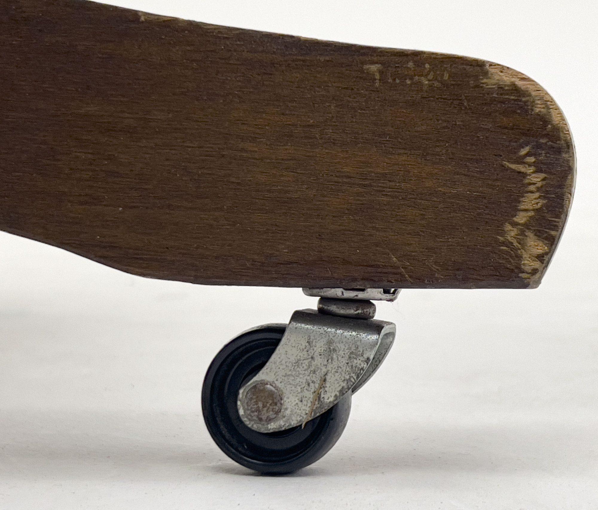 overall good condition, with wear to leather, including cracking and fading, some scattered abrasions, one caster is detached