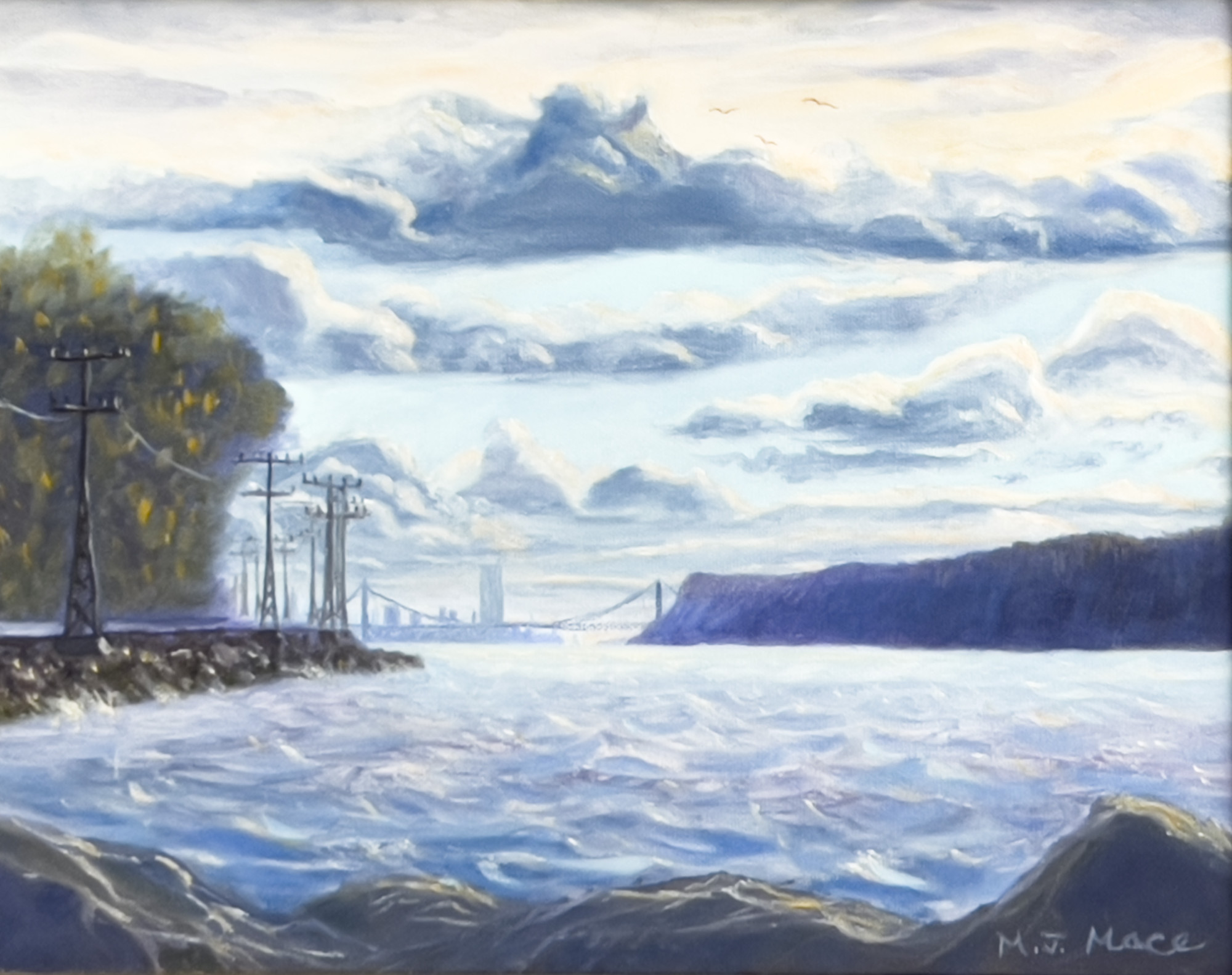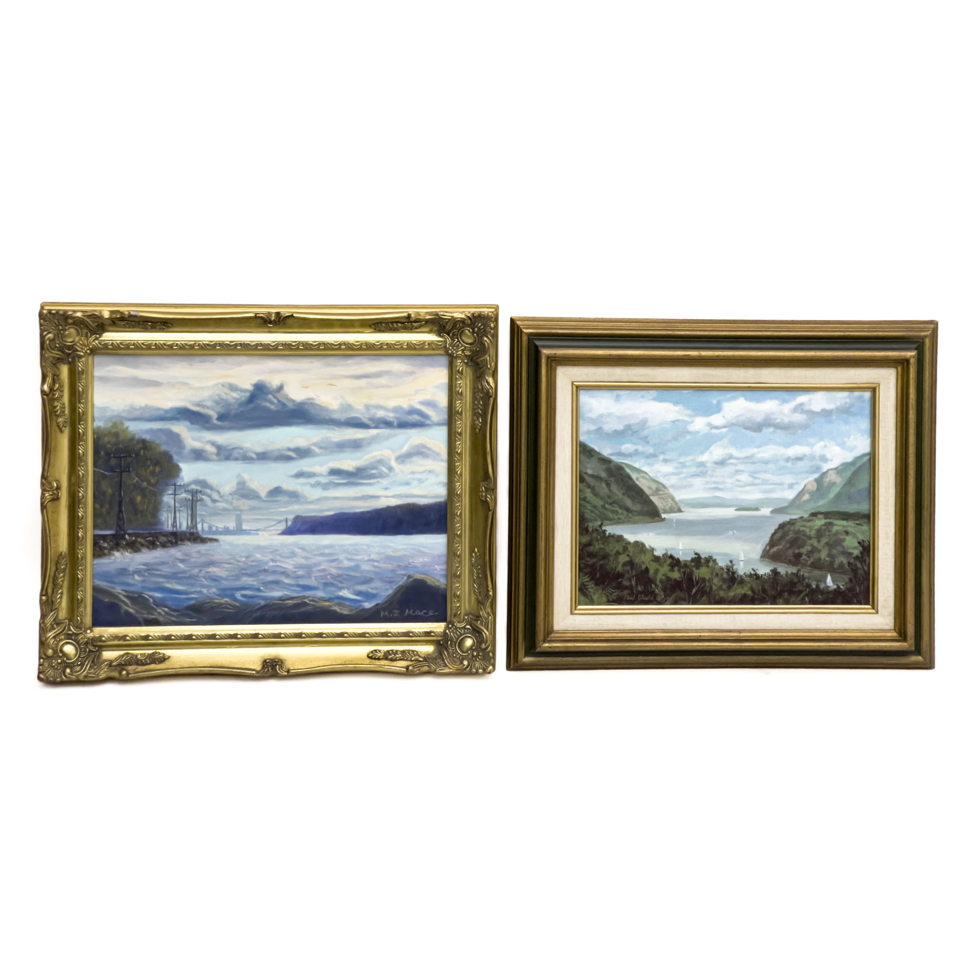 One painting by Mark James Mace, the other by Paul Gould, 1996, each depicting scenes on the Hudson river