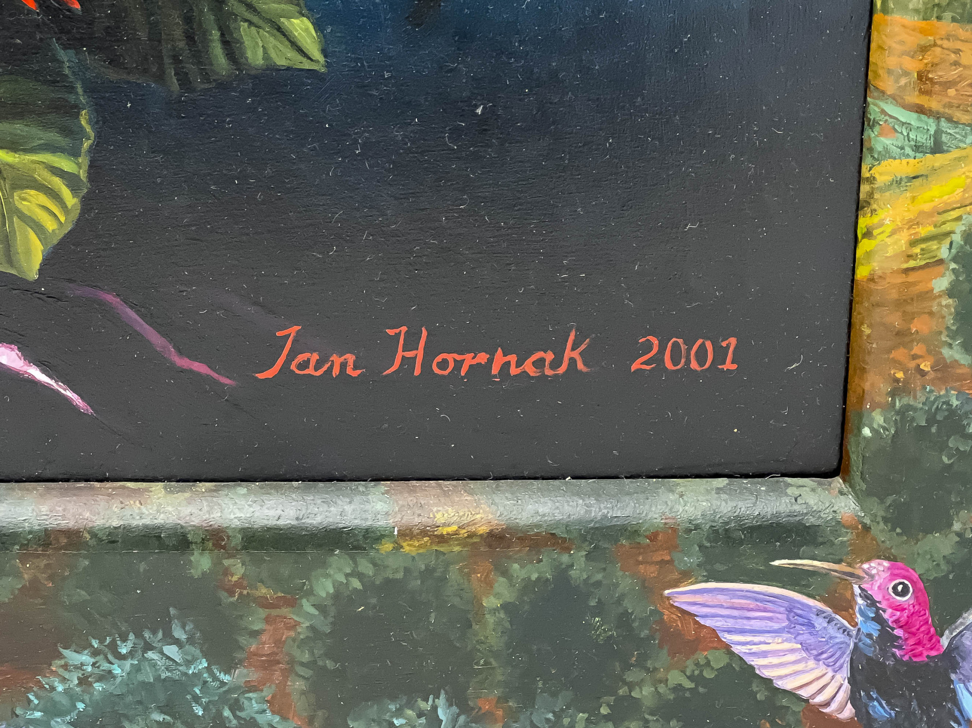 Art has not been examined out of the frame unless otherwise stated. Frames, lampshades, or items described as “supplementary” are not considered integral to the value of the lot and are excluded from condition assessments. This includes any mat, mounting, glazing, hanging apparatus, case, box, or stand. Timepiece movements, lighting elements and items with mechanical or electrical components have not been thoroughly tested and are not covered under warranty by Capsule.