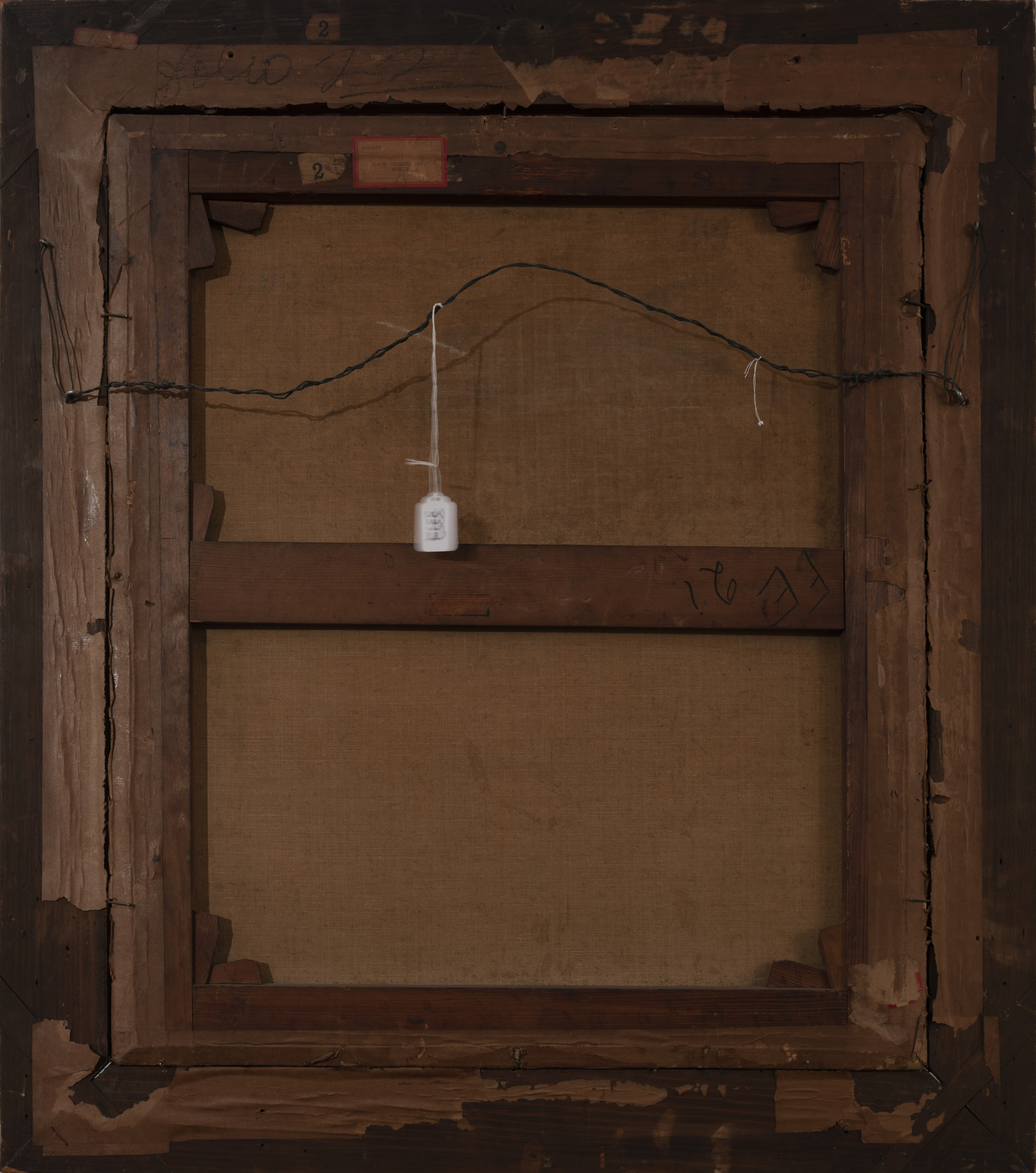 good condition, some craquelure in center, surface abrasion in upper left corner medium is well attached to the support, would benefit from a cleaning