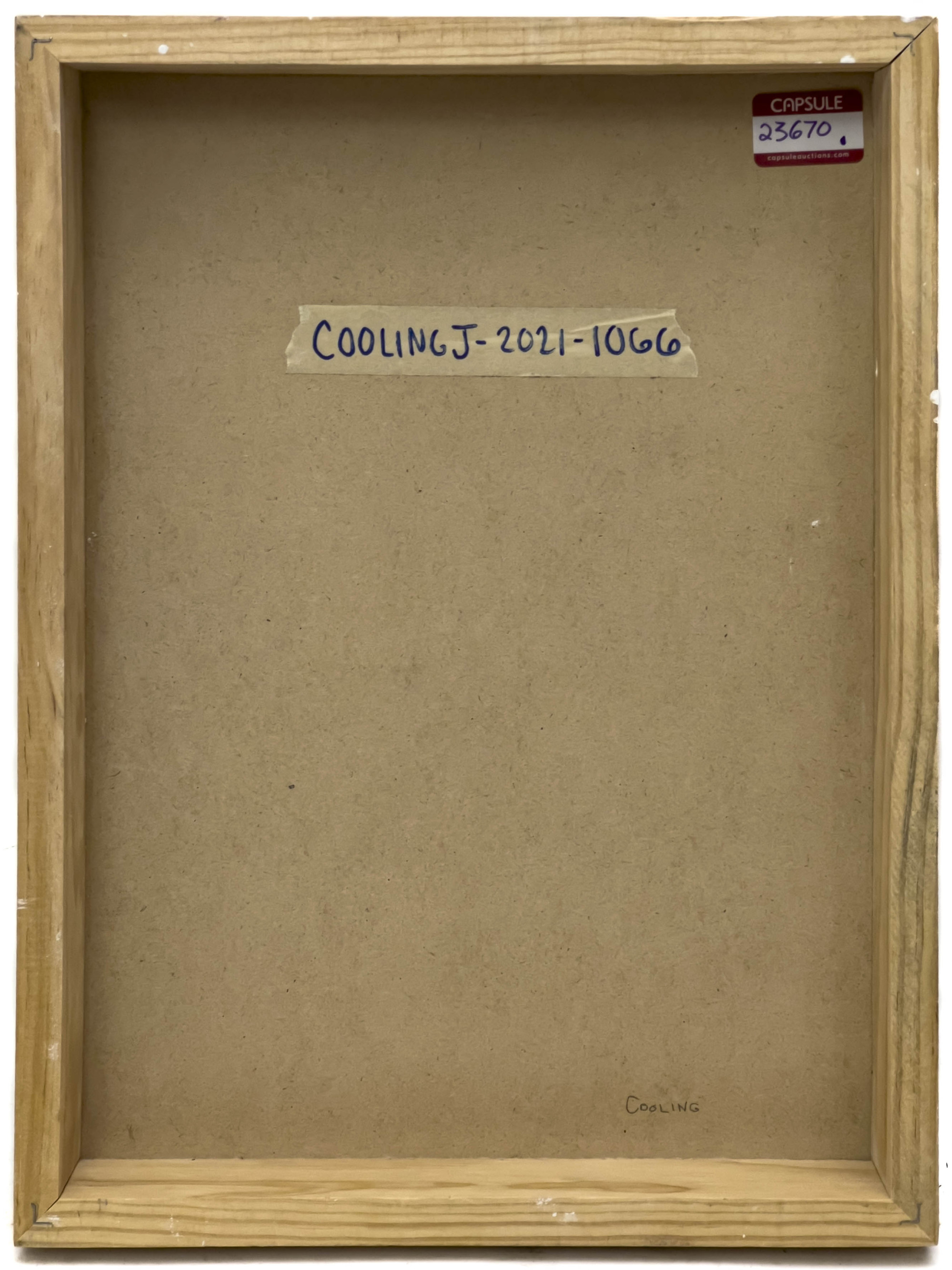 Art has not been examined out of the frame unless otherwise stated. Frames, lampshades, or items described as “supplementary” are not considered integral to the value of the lot and are excluded from condition assessments. This includes any mat, mounting, glazing, hanging apparatus, case, box, or stand. Timepiece movements, lighting elements and items with mechanical or electrical components have not been thoroughly tested and are not covered under warranty by Capsule.