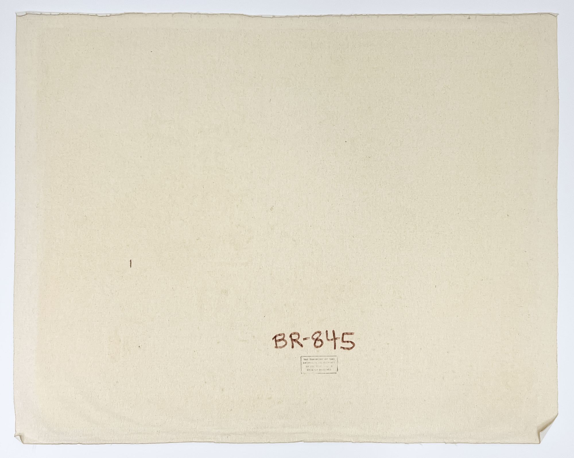 overall good condition, medium is well attached to the support, with buckling to bottom edge