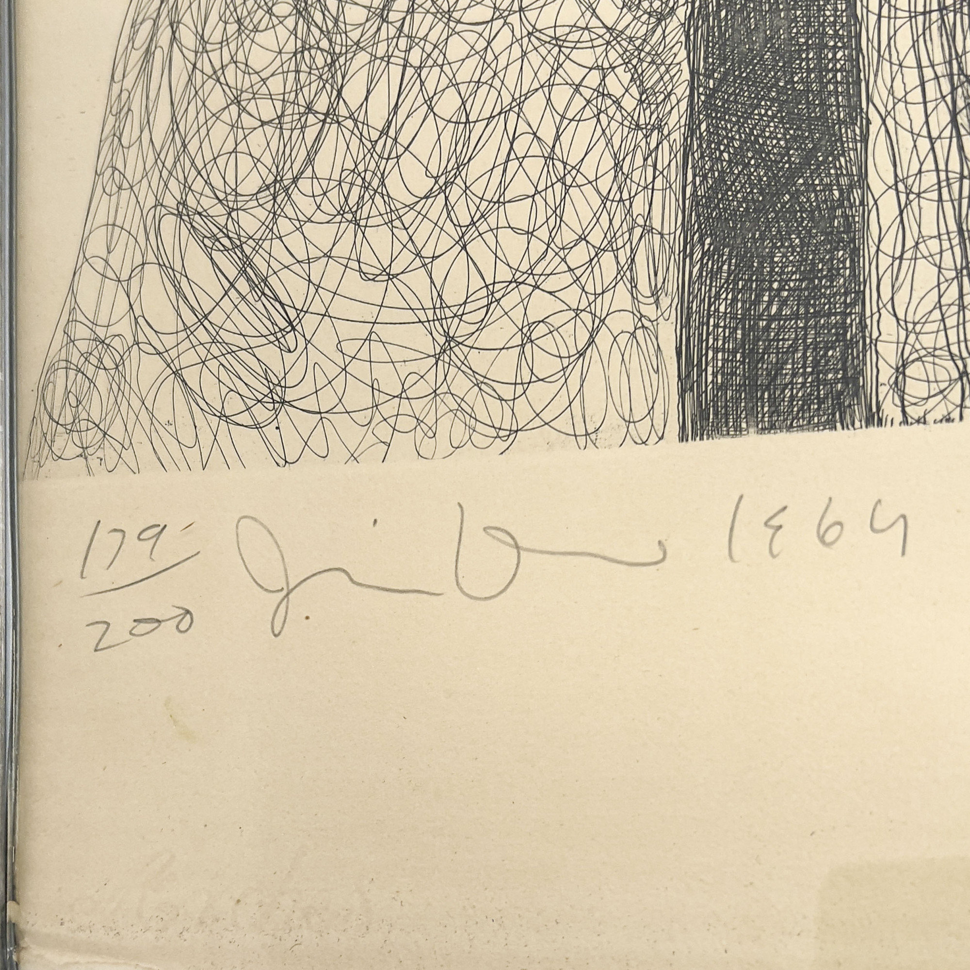 Jim Dine is a contemporary artist best known for his contributions to the Pop art movement, as well as his association with the Neo-Dada art movement. Dine's work spans various artistic mediums, including painting, drawing, sculpture, and printmaking. He gained fame in the 1960s as one of the pioneering artists of Pop art, which focused on everyday objects and consumer culture. One of his most famous series during this period is the "Hearts" series, which features colorful, expressive renditions of hearts, often painted with a combination of traditional and unconventional materials. Dine's art often combines personal and autobiographical elements with iconic symbols and everyday objects. His works frequently feature items like tools, bathrobes, and everyday household objects. Dine's innovative use of materials, such as using found objects in his art, has contributed to his unique style. He also incorporates a sense of emotional and personal depth into his work, distinguishing it from the more detached, mass-culture-focused aspects of Pop art. Image: Martin C Barry