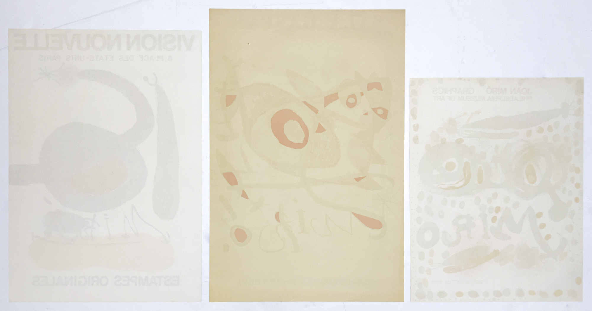 Comprising exhibition posters for Joan Miro including Graphics at the Philadelphia Museum of Art from 1966, Vision Nouvelle Estampes Originales from Arte Paris, and Sobreteixims I Escultures by Sala Gaspar from 1972