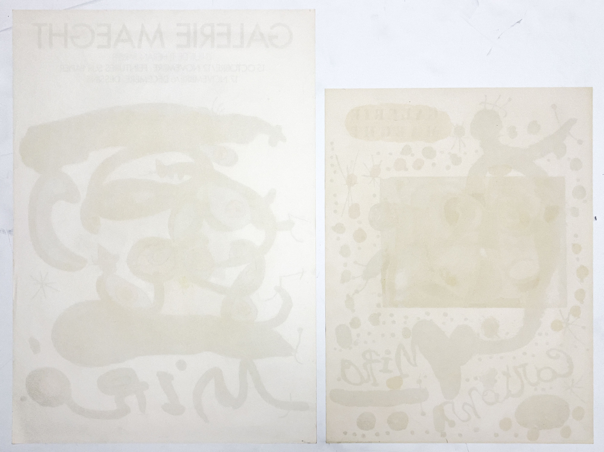 Comprising exhibition posters for Joan Miró at Galerie Maeght, including Cartons Miró from 1977 and Peintures sur Papier from 1971