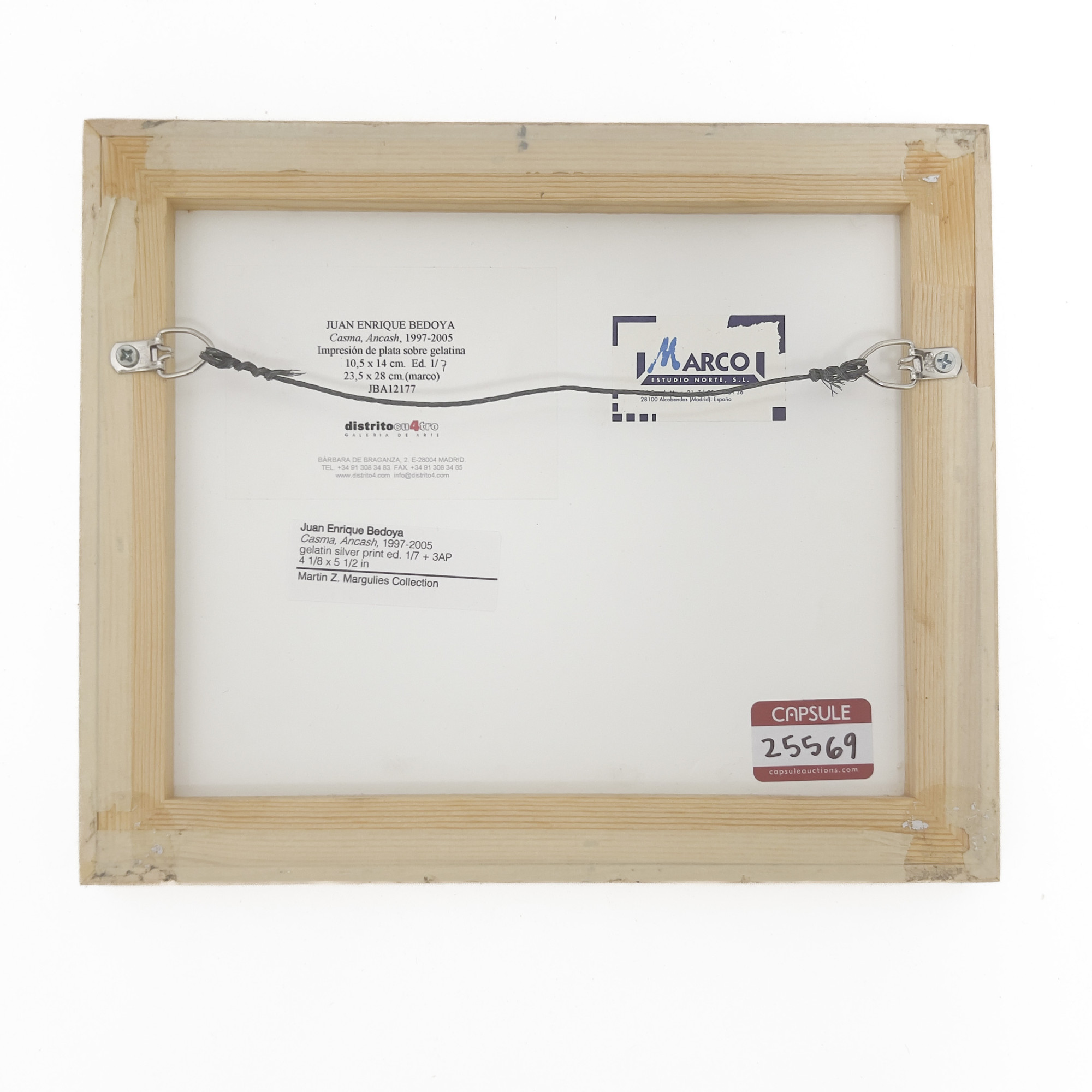 Art has not been examined out of the frame unless otherwise stated. Frames, lampshades, or items described as “supplementary” are not considered integral to the value of the lot and are excluded from condition assessments. This includes any mat, mounting, glazing, hanging apparatus, case, box, or stand. Timepiece movements, lighting elements and items with mechanical or electrical components have not been thoroughly tested and are not covered under warranty by Capsule.