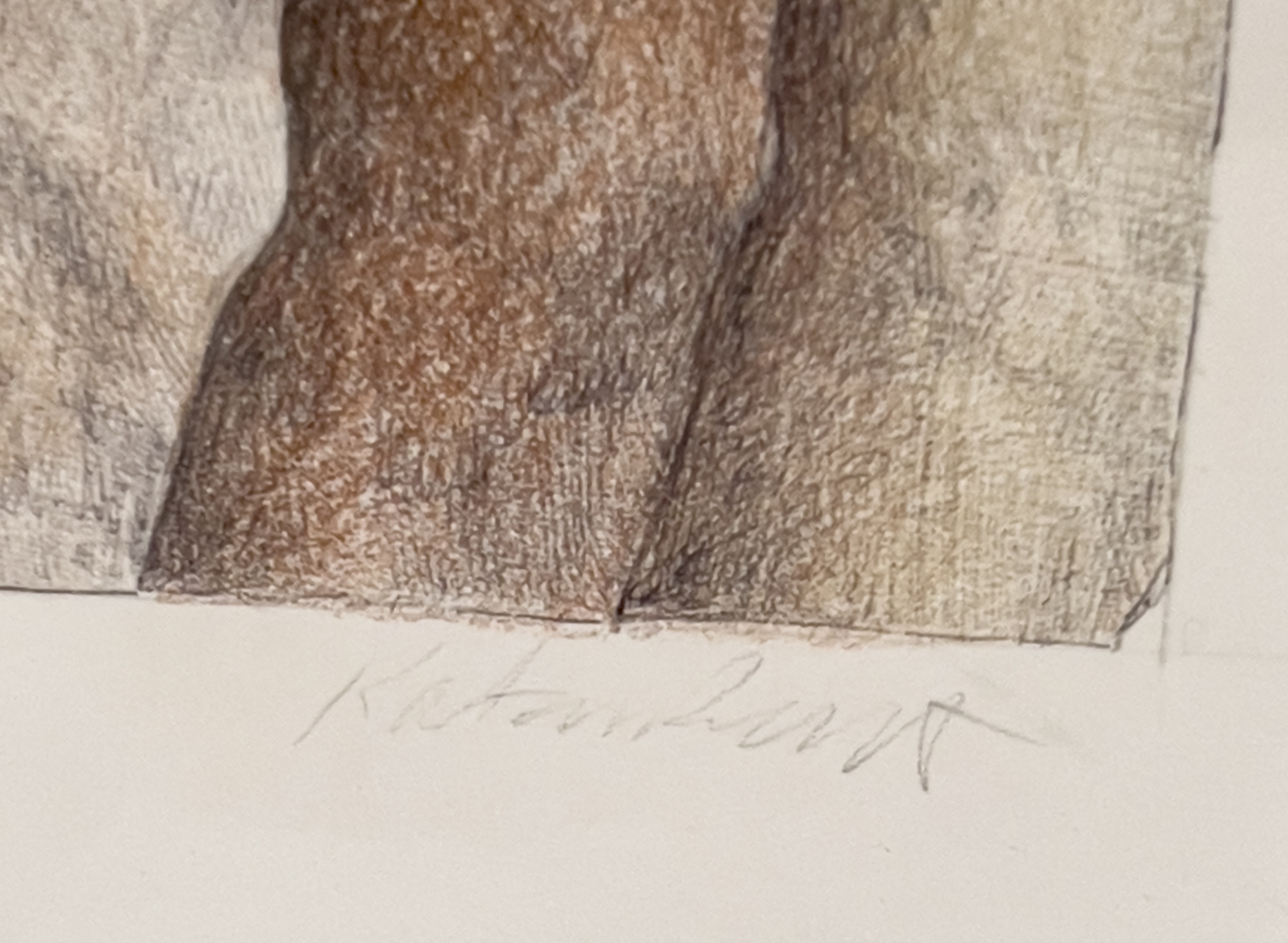colored pencil and ball point pen on paper image:11 3/4 x 9 1/2 inches signed lower right