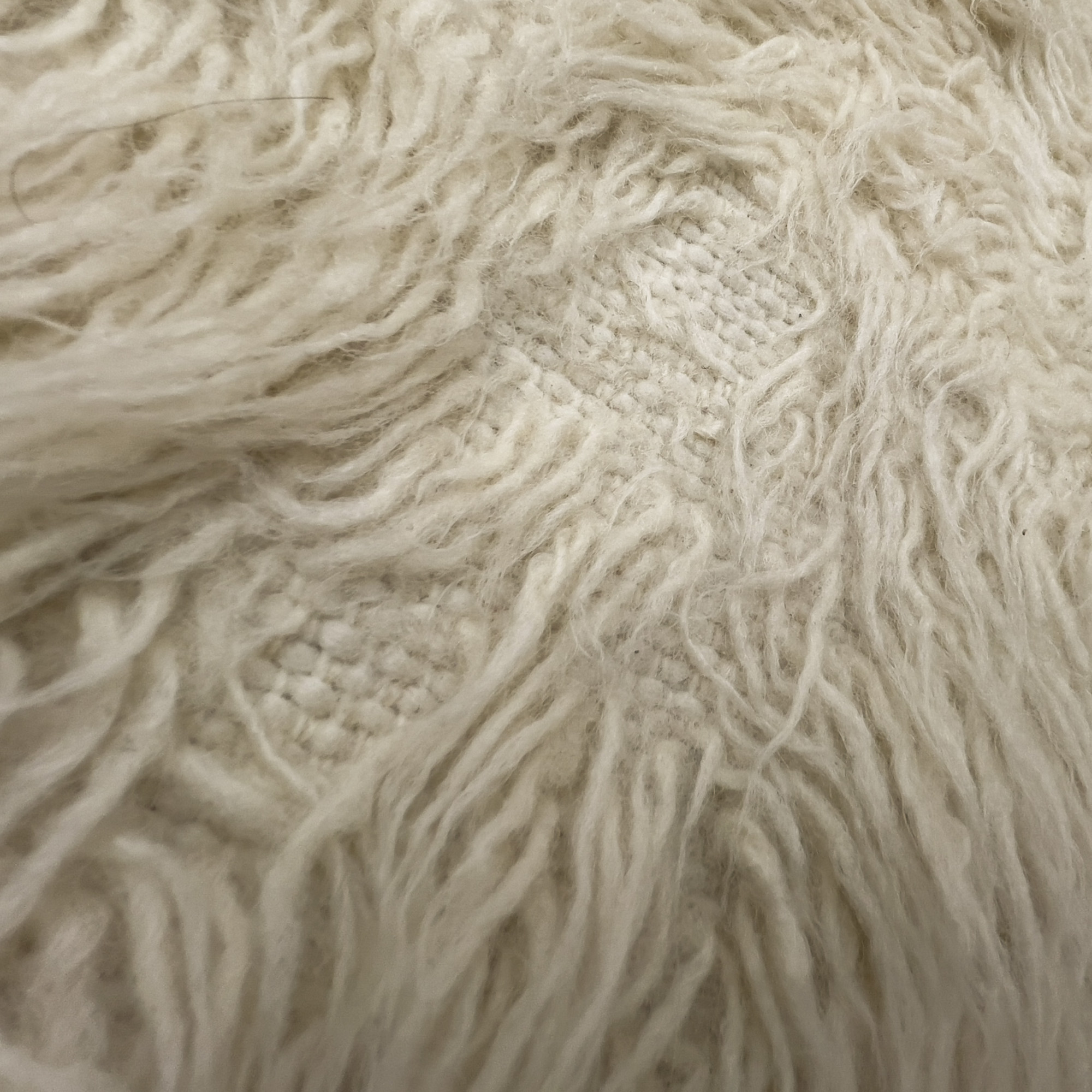 vintage long shag pile hand woven carpet in white 11 ft. x 7 ft. 6 in.