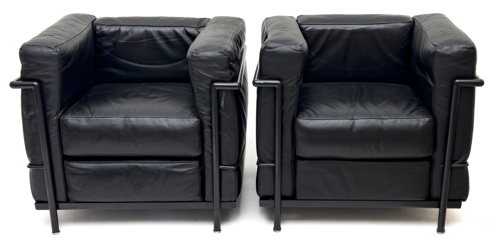 leather, steel each: 27 x 27 1/2 x 30 inches