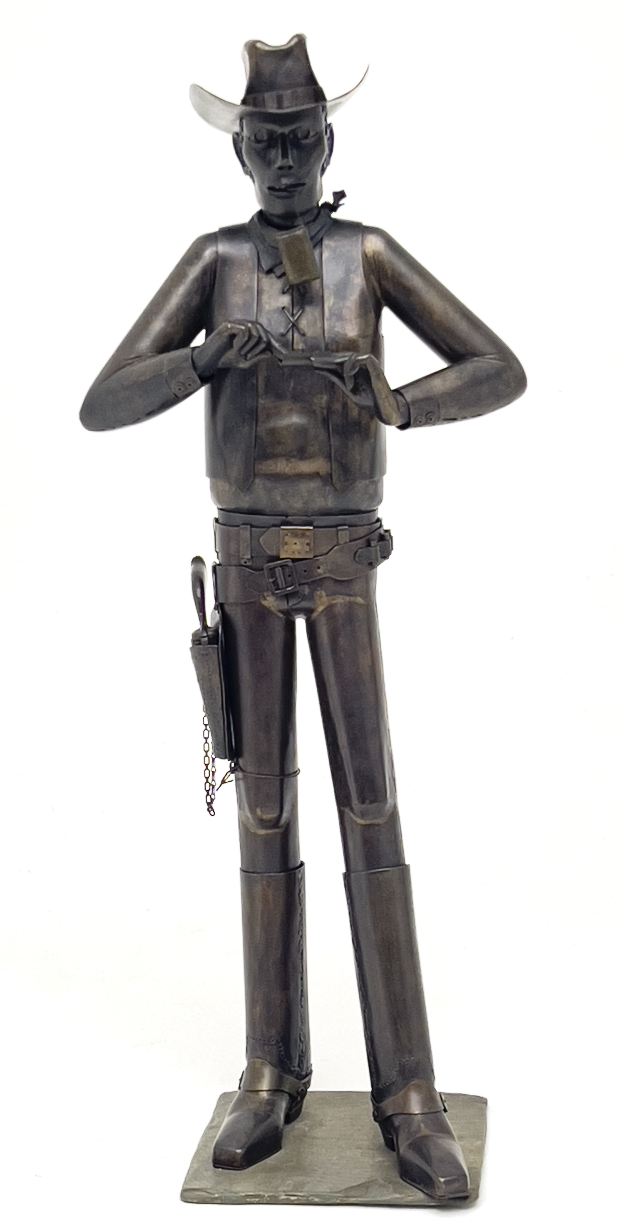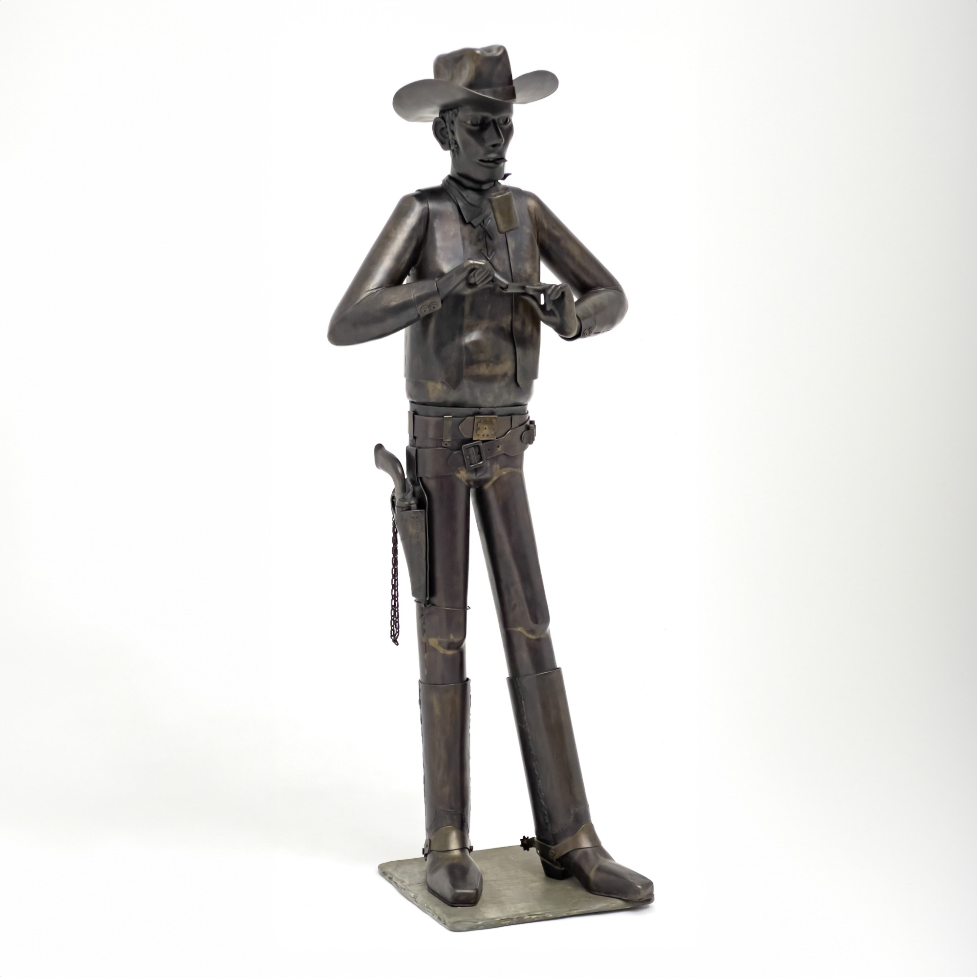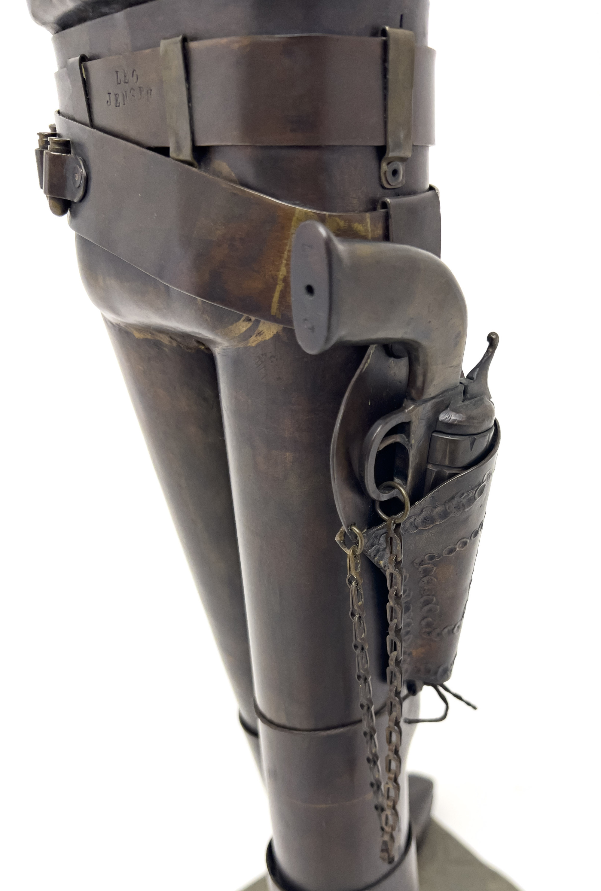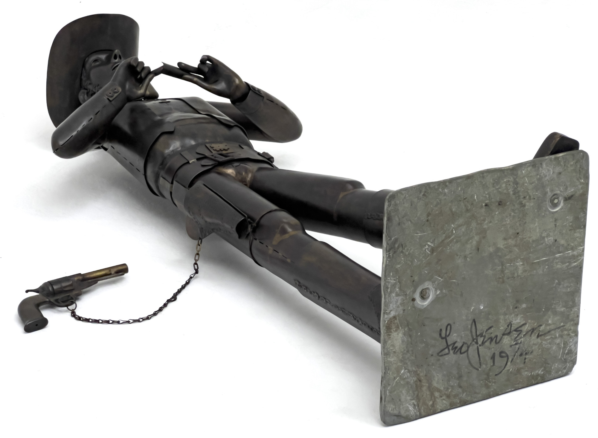 bronze 38 1/2 x 16 x 11 inches signature to underside of base, impressed to belt
