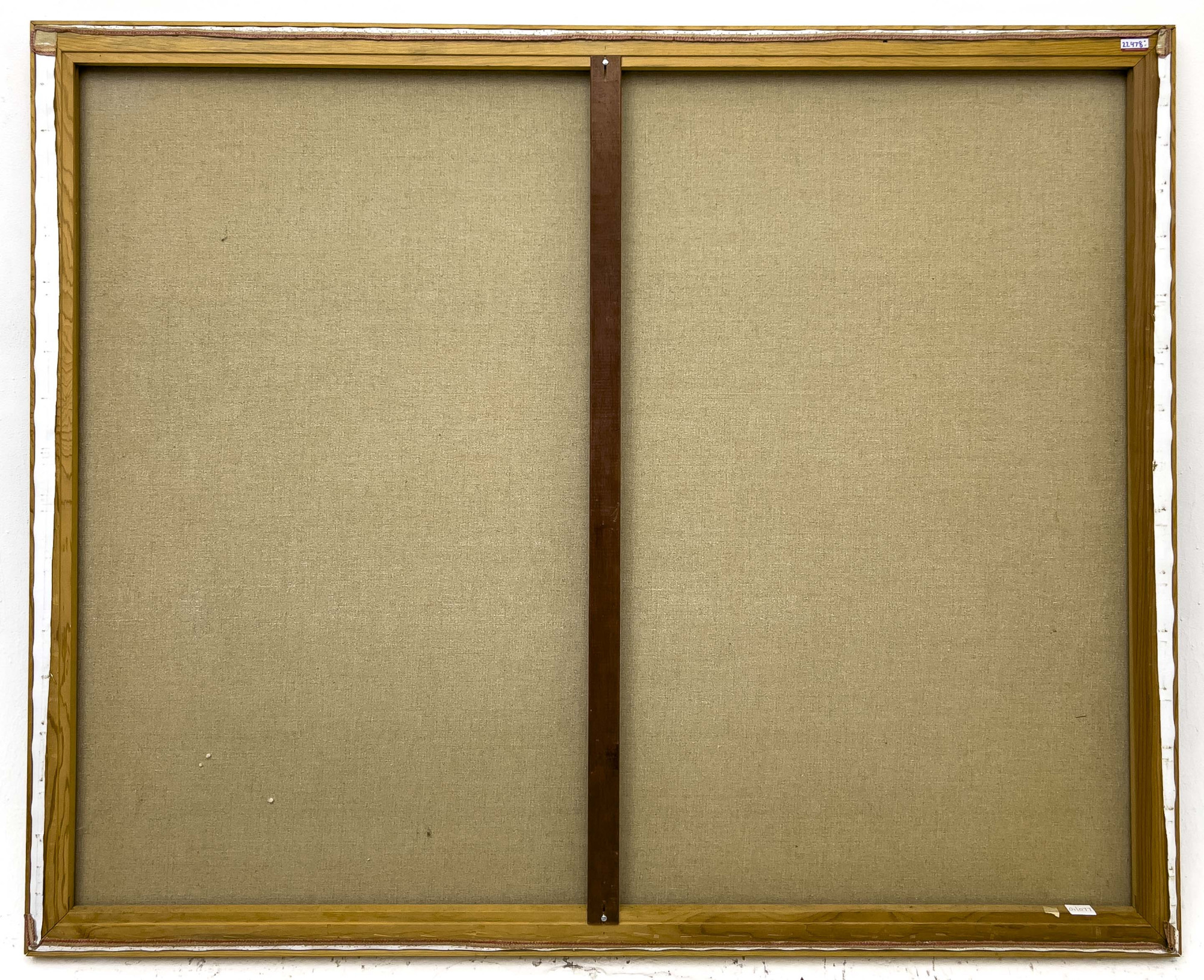 overall dimensions: 50 1/2 x 62 1/2 x 2 inches, wood strip frame