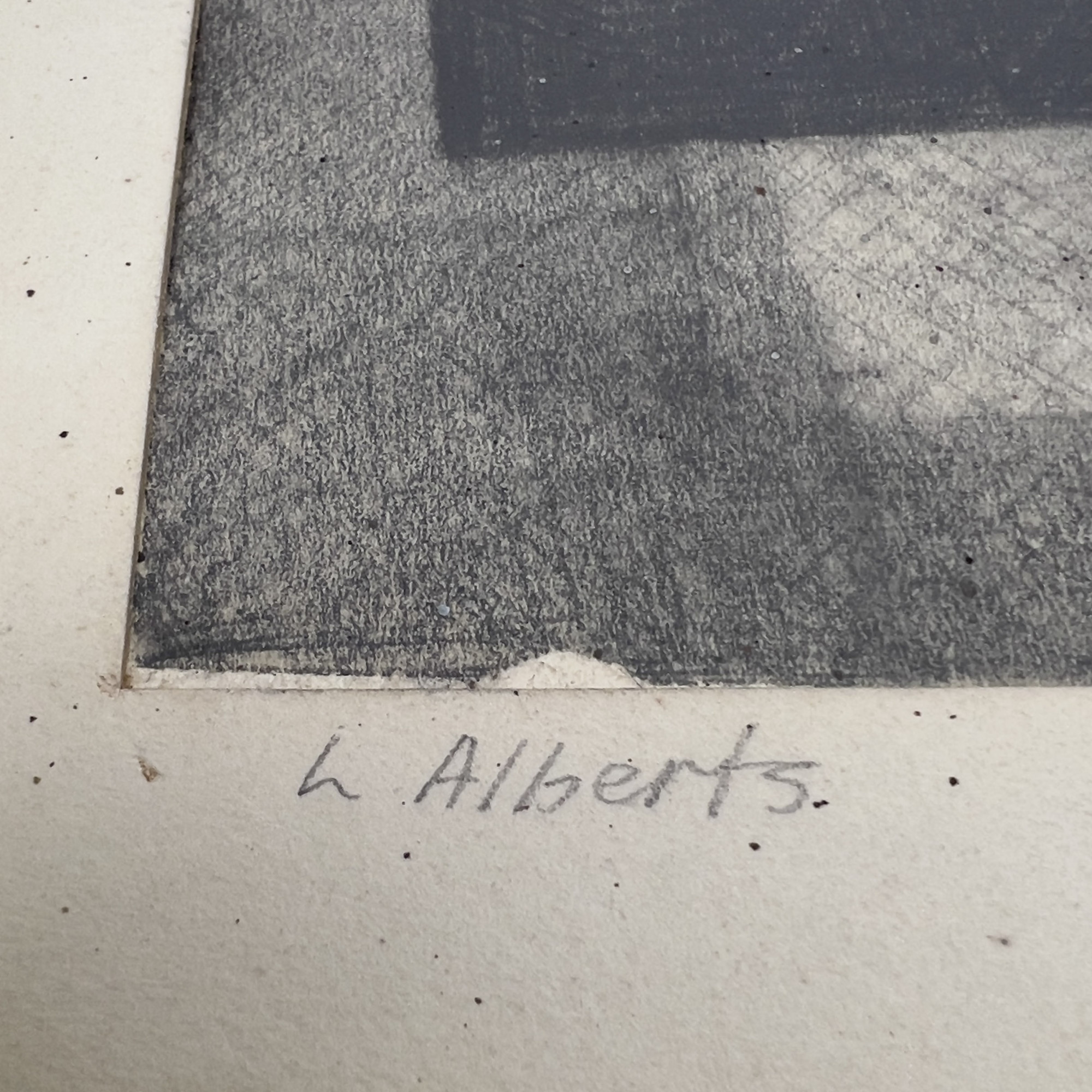 overall fair condition, with ink/paint splatter throughout, taped to mat, one side of mat ripped