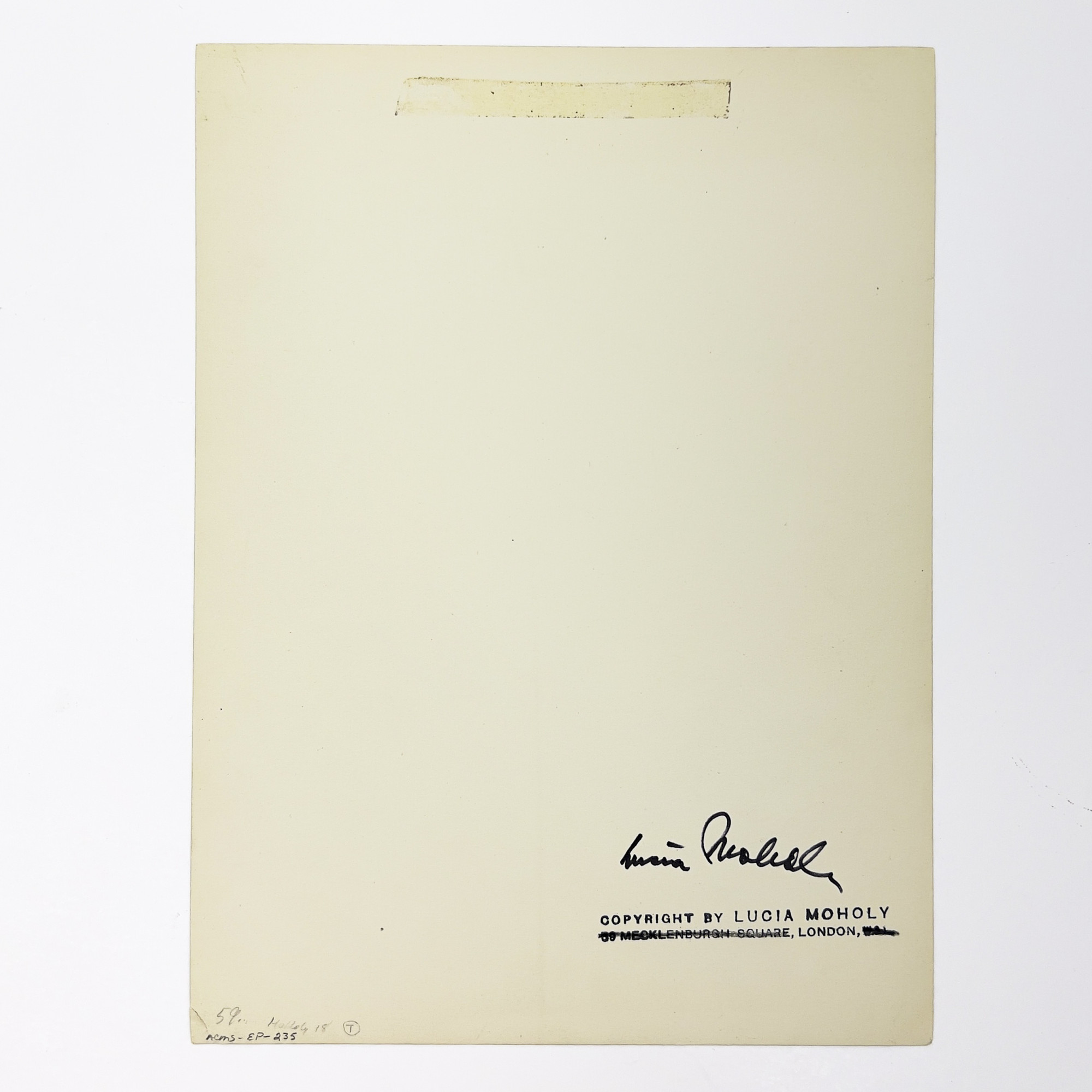 signed verso and credit stamp verso