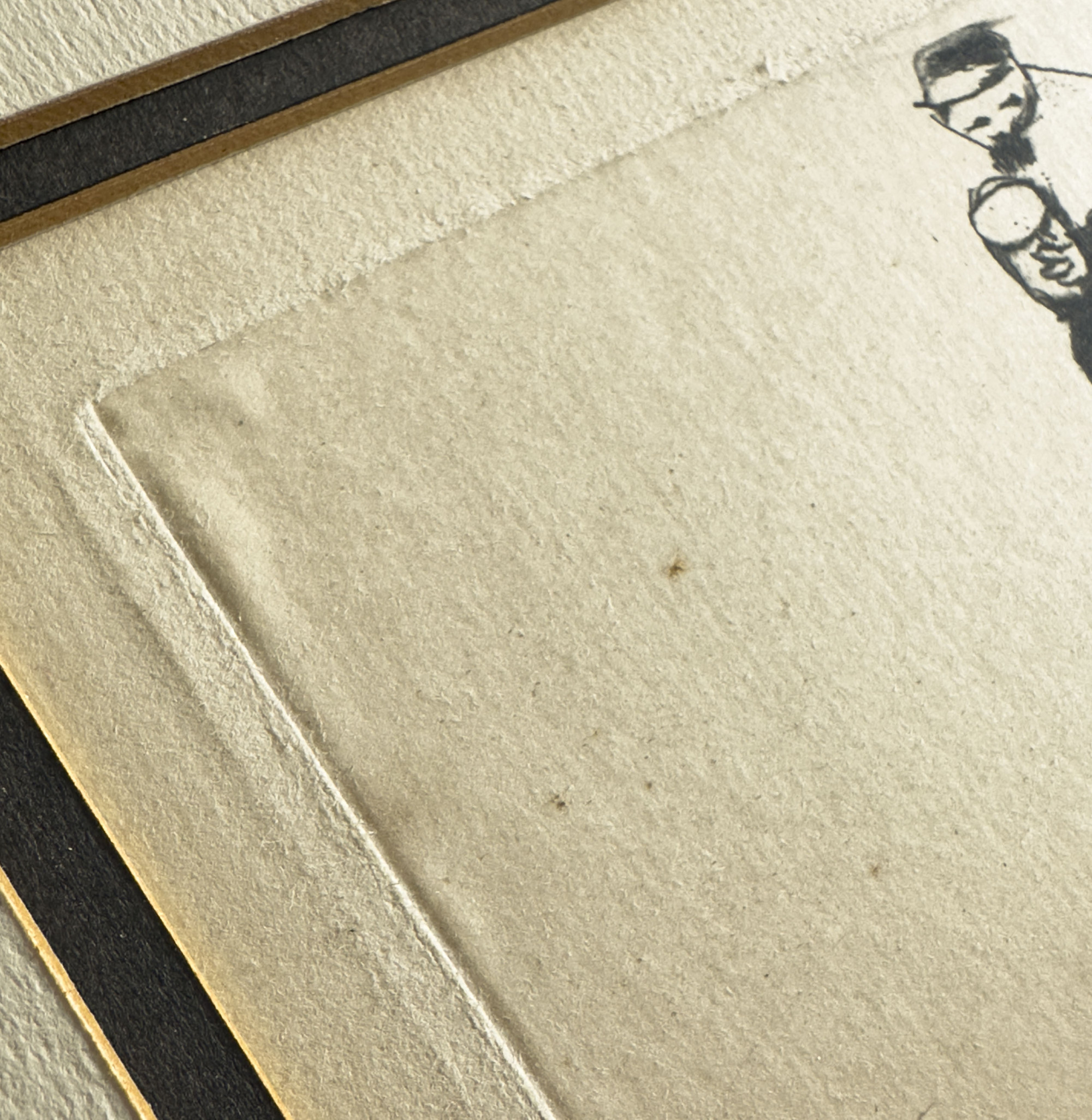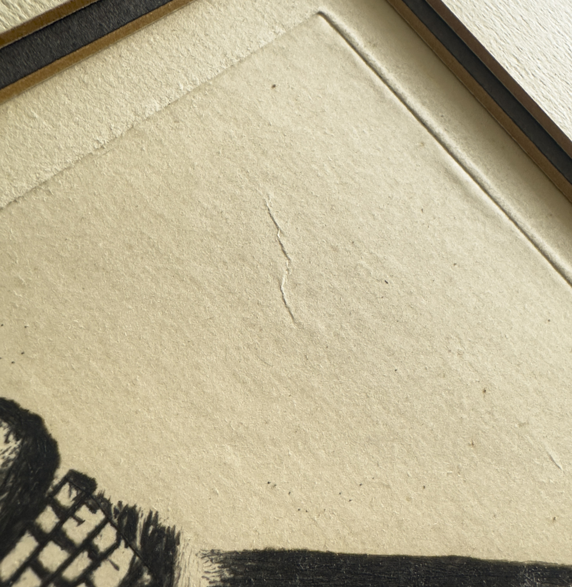 overall good condition, with some gentle toning and spots of foxing, mat burn tom edge, paper is laid down to board, with very minor crease to upper right corner
