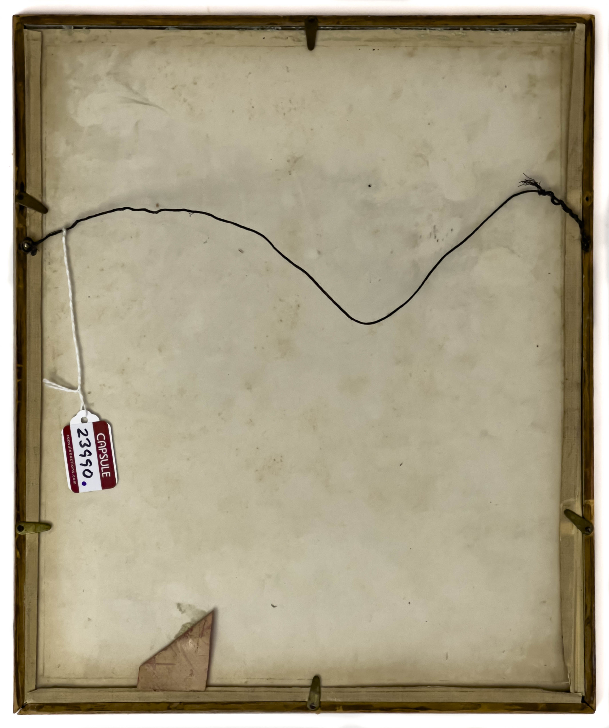 Art has not been examined out of the frame unless otherwise stated. Frames, lampshades, or items described as “supplementary” are not considered integral to the value of the lot and are excluded from condition assessments. This includes any mat, mounting, glazing, hanging apparatus, case, box, or stand. Timepiece movements, lighting elements and items with mechanical or electrical components have not been thoroughly tested and are not covered under warranty by Capsule.