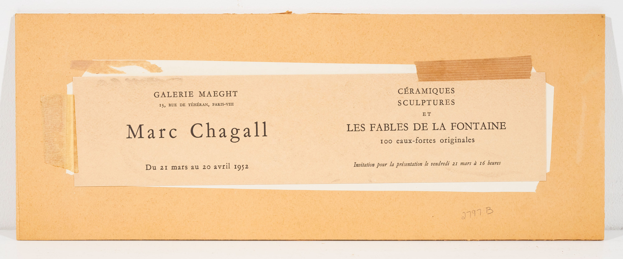 invitation card for the exhibition 'Céramiques, sculptures et Les Fables de La Fontaine' (1952)