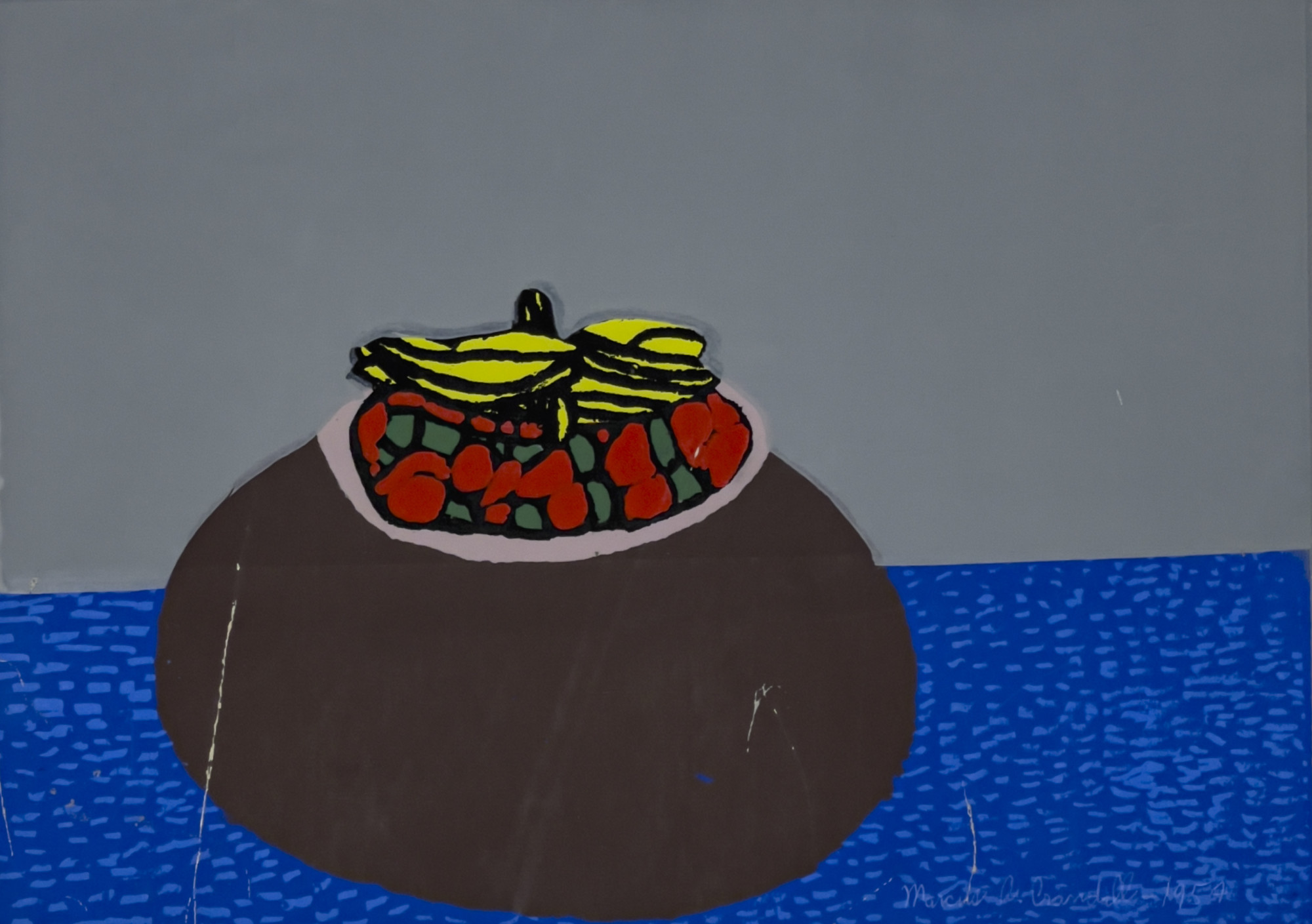 As she purchased art for herself, Madden focused on paintings, prints, pottery and glassworks, often drawn to bright colors and recurring subjects, such as harbor scenes, sailboats, women, nature and fruit. Madden’s former husband, Jonathan Alk, was also a respected Green Bay antique dealer. In the seventies and eighties they together selected treasures from auctions, estate sales and their various travels to enhance his independent business.