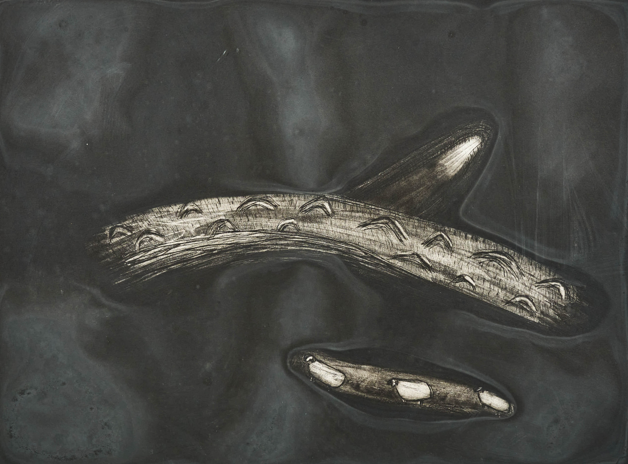 etching plate (largest): 19 1/4 x 25 3/4 inches plate: 18 3/4 x 25 3/4 inches each pencil signed lower right, one numbered 22/26 the other AP