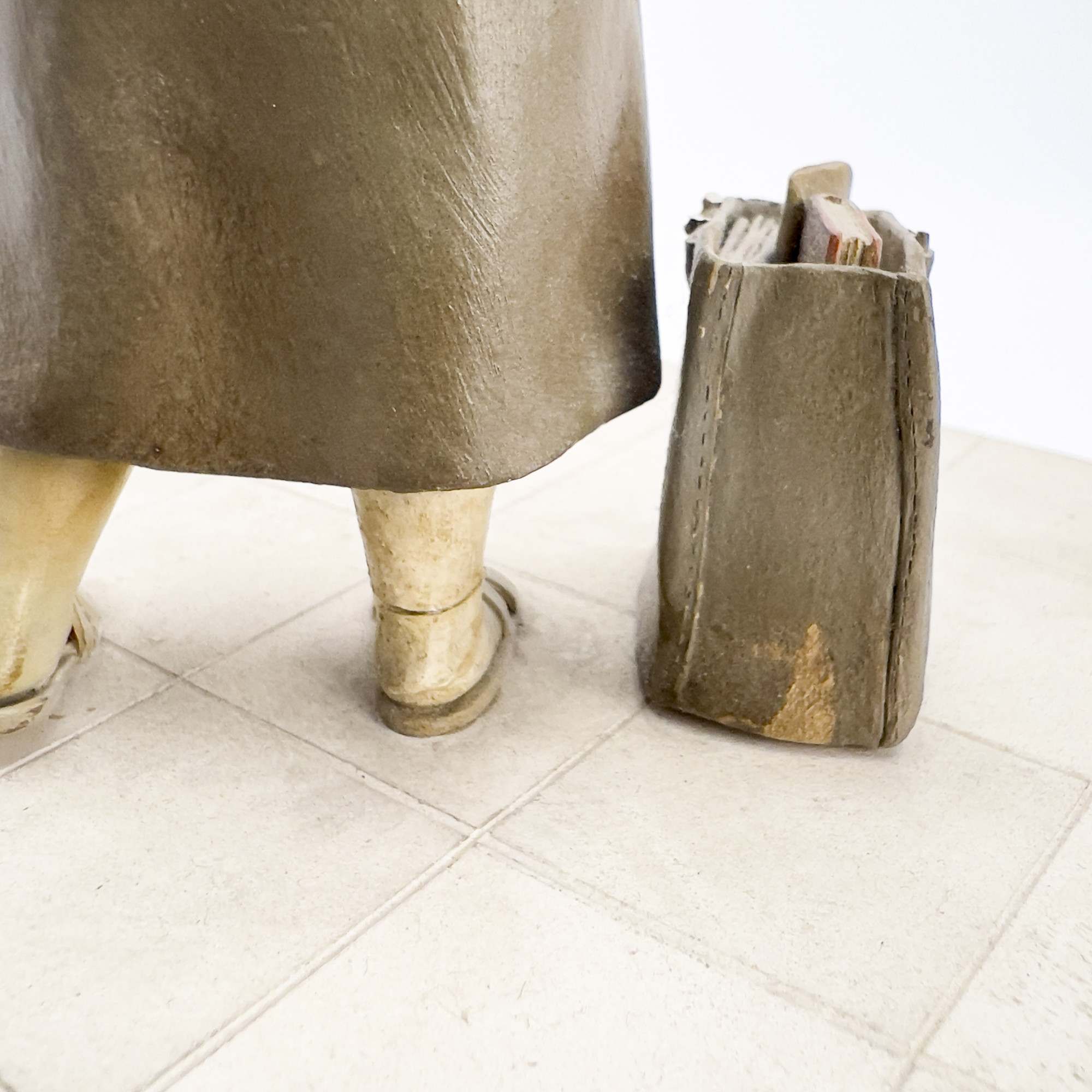 overall good condition, areas of repair to finger and ankle, bag handles broken one is missing one is inside the bag