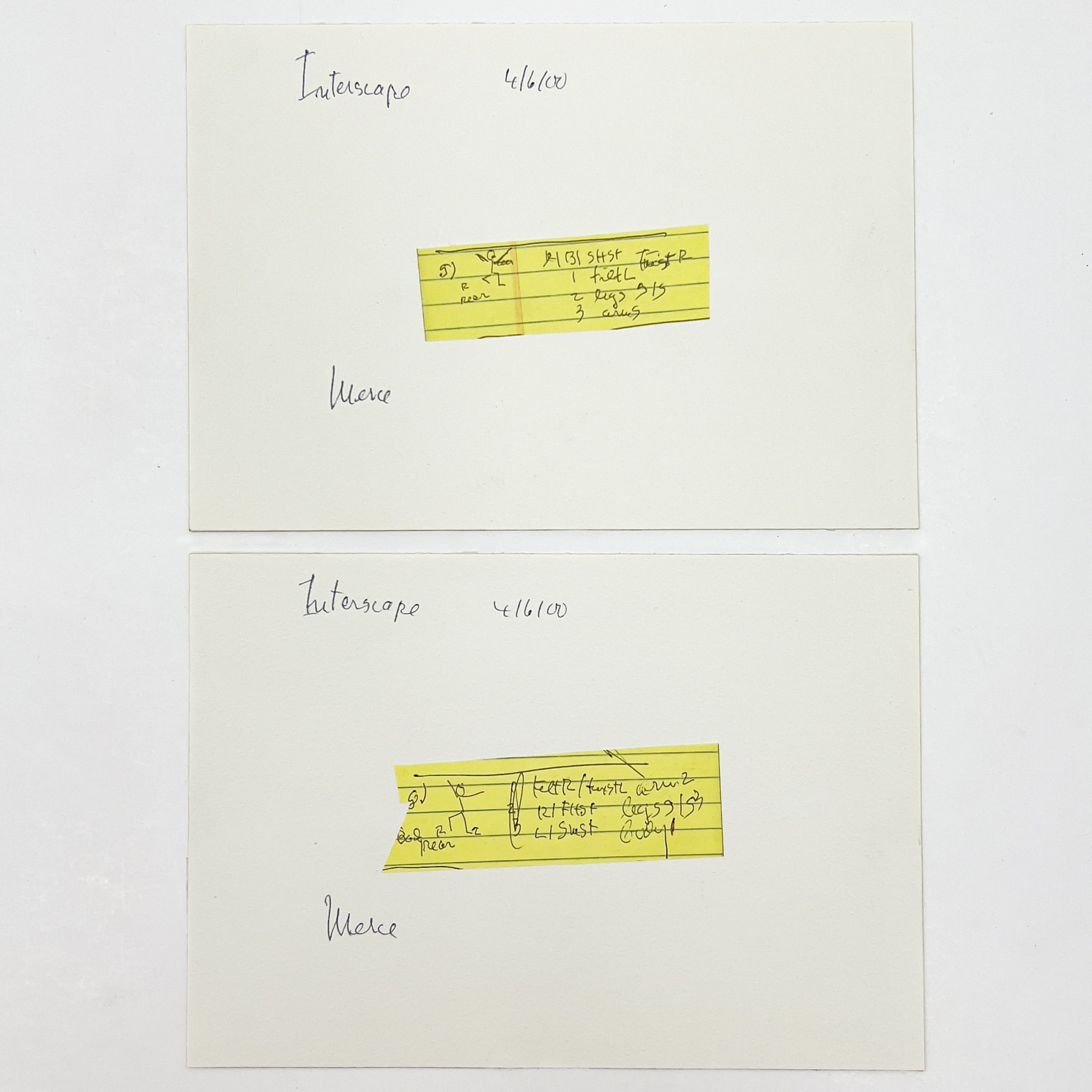 ink on legal paper mounted on watercolor paper 7 x 10 inches each signed lower left