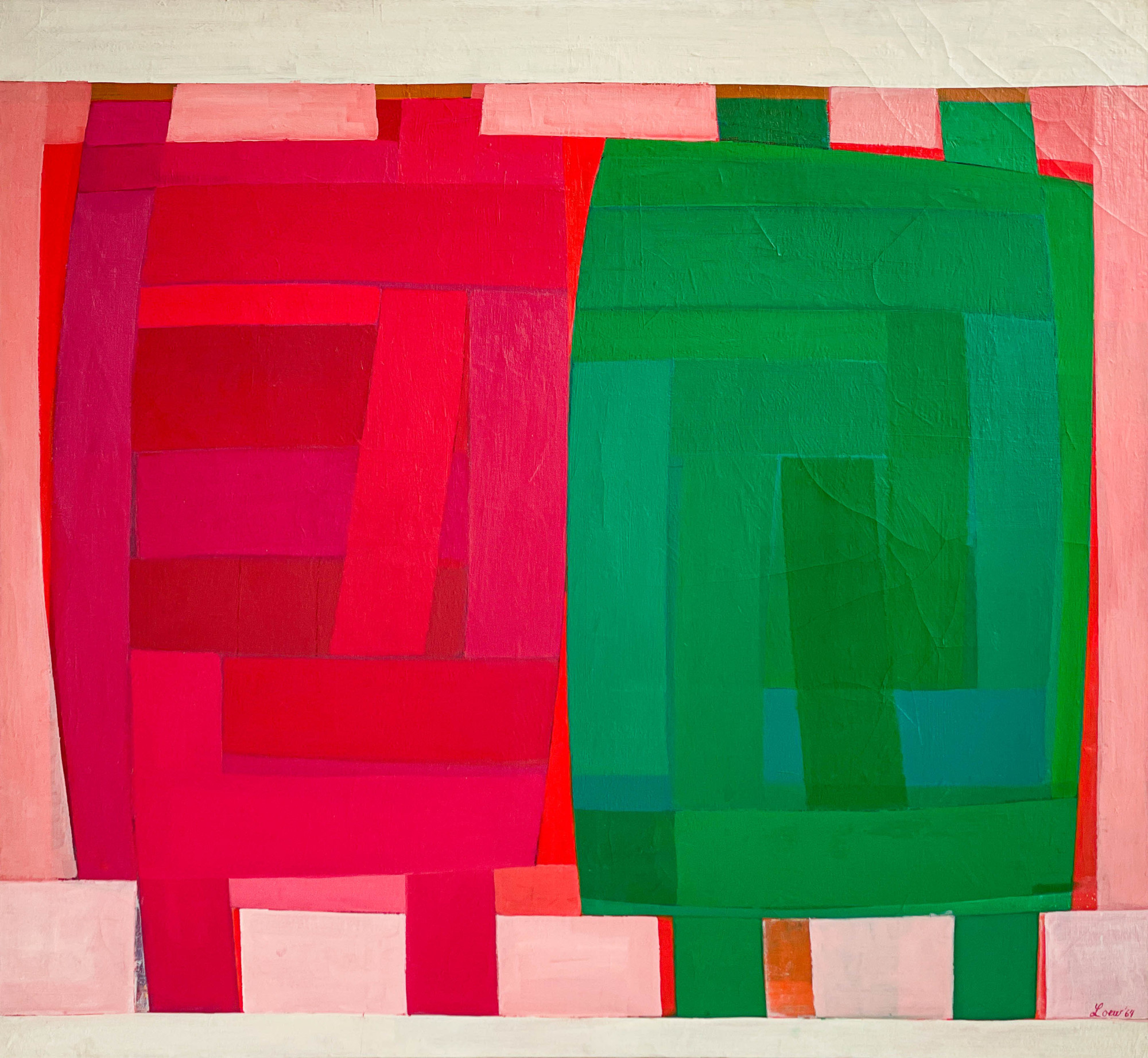 Michael Loew was an American Painter who was part of the abstract expressionist movement. Loew's work contributed to the exploration of abstraction as a means of conveying personal expression and inner emotions. Loew's use of bold, vibrant colors and his emphasis on the power of color as a means of evoking emotions aligned with the principles of color field painting. Loew's art delved into the expressive potential of color and form. He sought to create visually impactful compositions by using vibrant hues, sometimes applied in broad, sweeping brushstrokes. His approach invited viewers to engage with the emotional and sensory aspects of his work. Loew was associated with prominent artists of his time, including Willem De Kooning, Mark Rothko, Adolph Gottlieb, and Barnett Newman. These connections reflect his involvement in a vibrant artistic community, where ideas and techniques were shared, and artistic movements were shaped. Loew's work received critical acclaim during his career. He taught painting at the School for Visual Arts and participated in numerous exhibitions, including solo shows, and garnered recognition for his contributions to the abstract expressionist movement. Image: Self Portrait by Michael Loew, 1968 from the collection of the Estate of Michael Loew Citations: OpenAI. "ChatGPT", chat.openai.com, accessed 2023, July 3