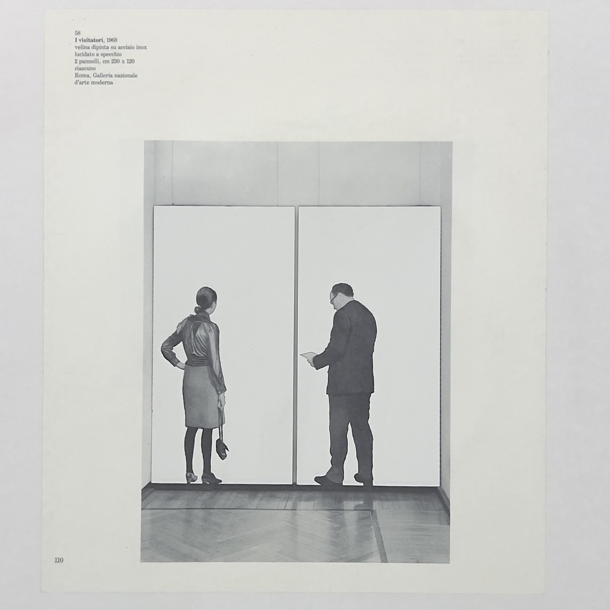 Based on the large Scale mirror painting, a collage made from a catalog page of the work with reflective surface mounted to the mirrors and cut to reveal the two figures.