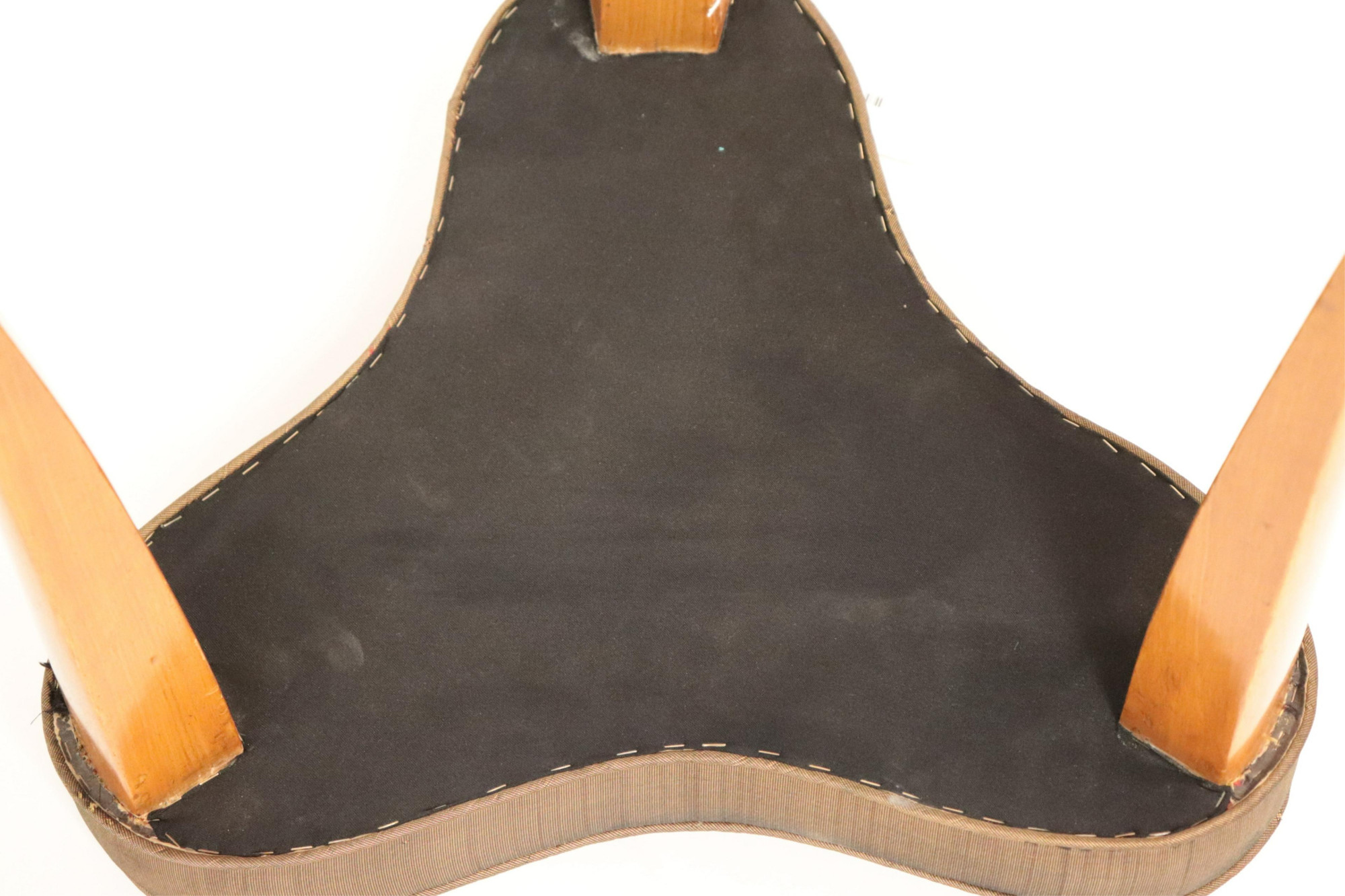 Mid Century Beechwood Triangular Bench, upholstered in coffee silk (NJWA159)(MS)