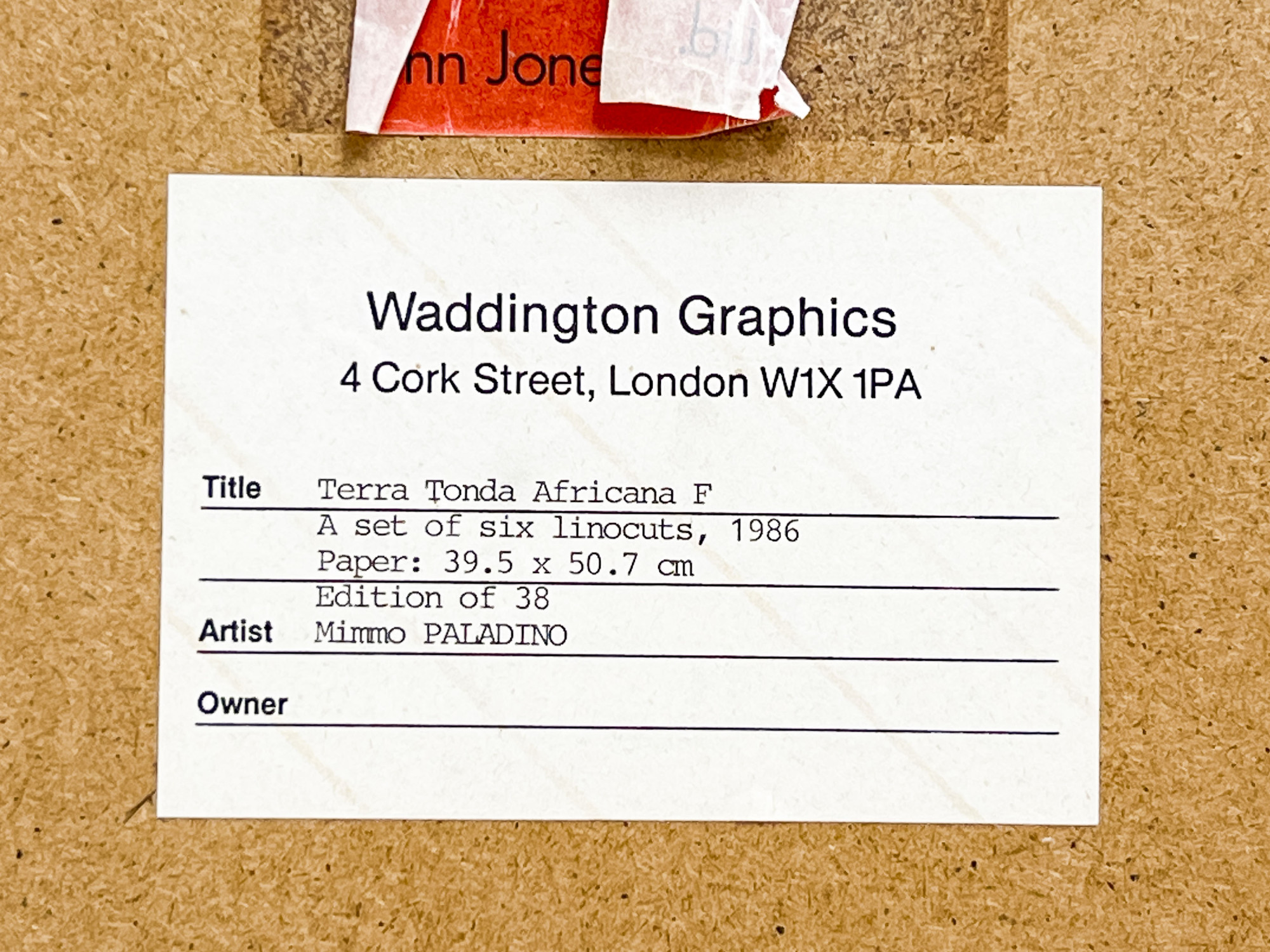 Waddington Graphics, London label affixed to frame verso