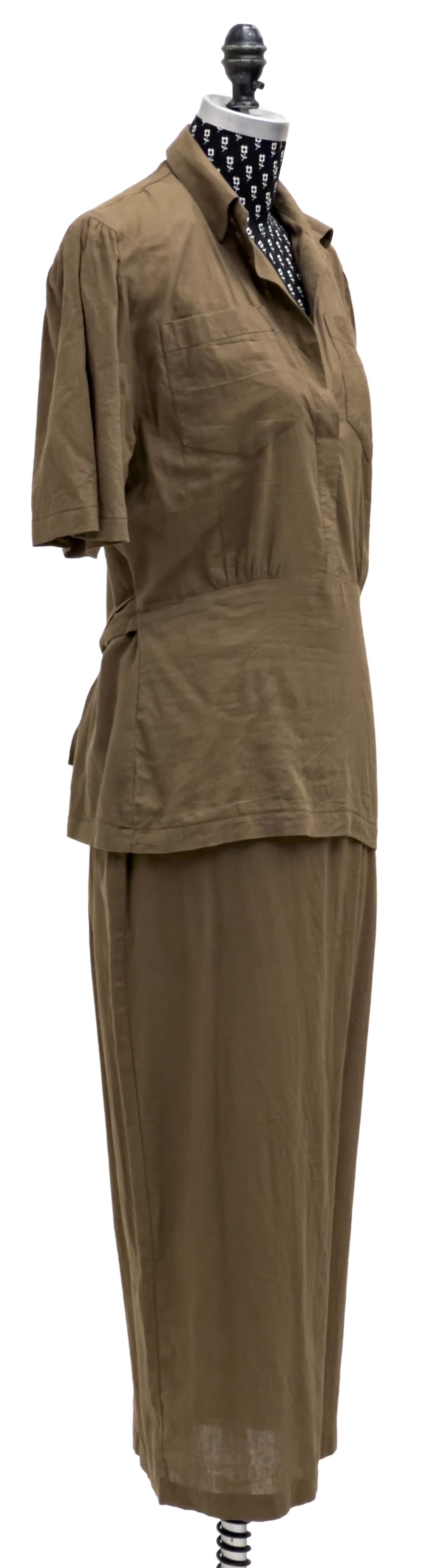 brown shirt and skirt set, shirt size medium, skirt size 8
