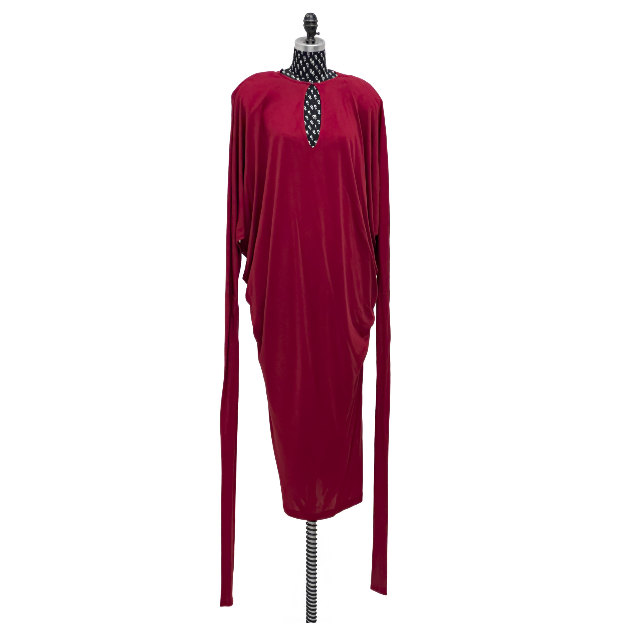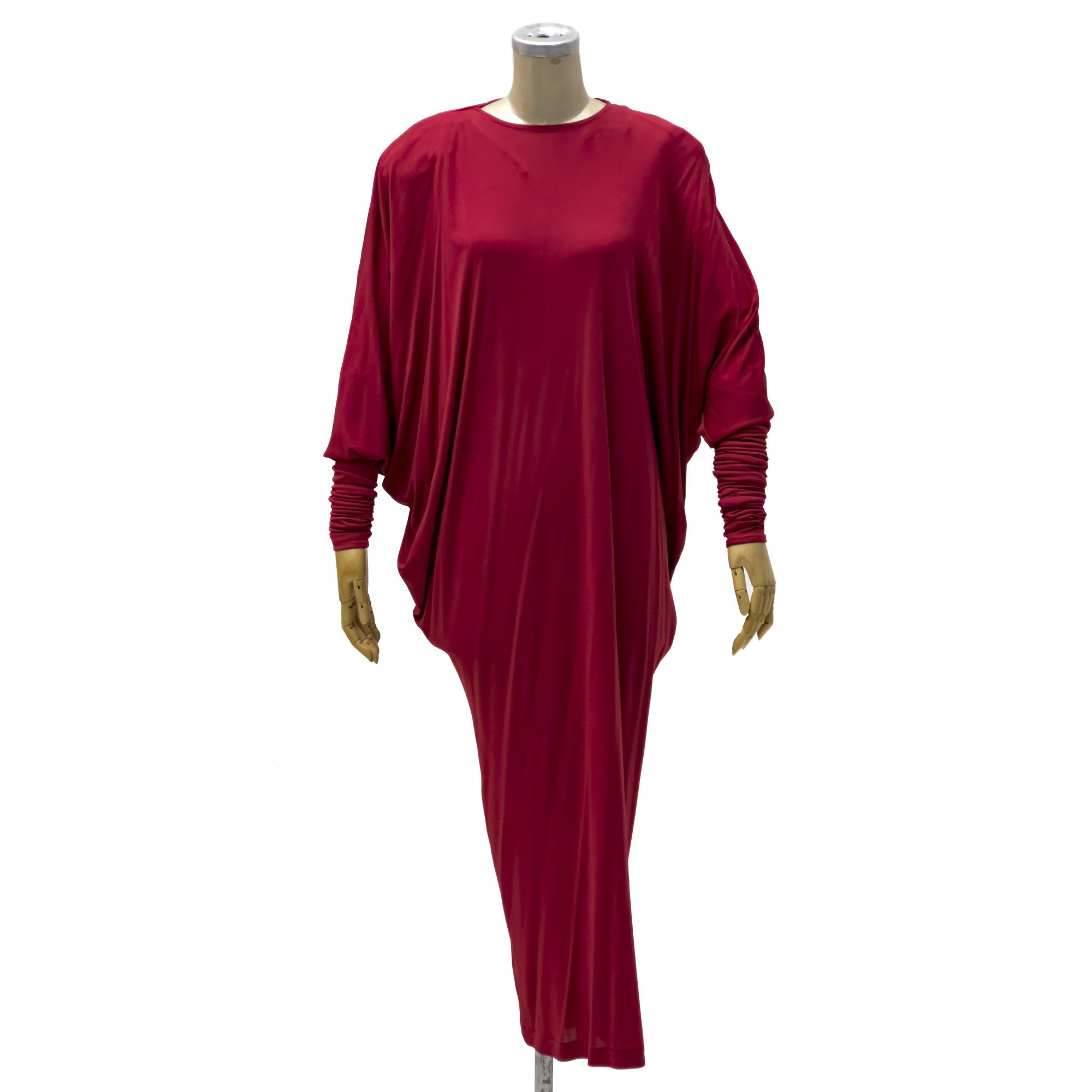 Red dress with slouched shoulders and scrunched sleeves, size small