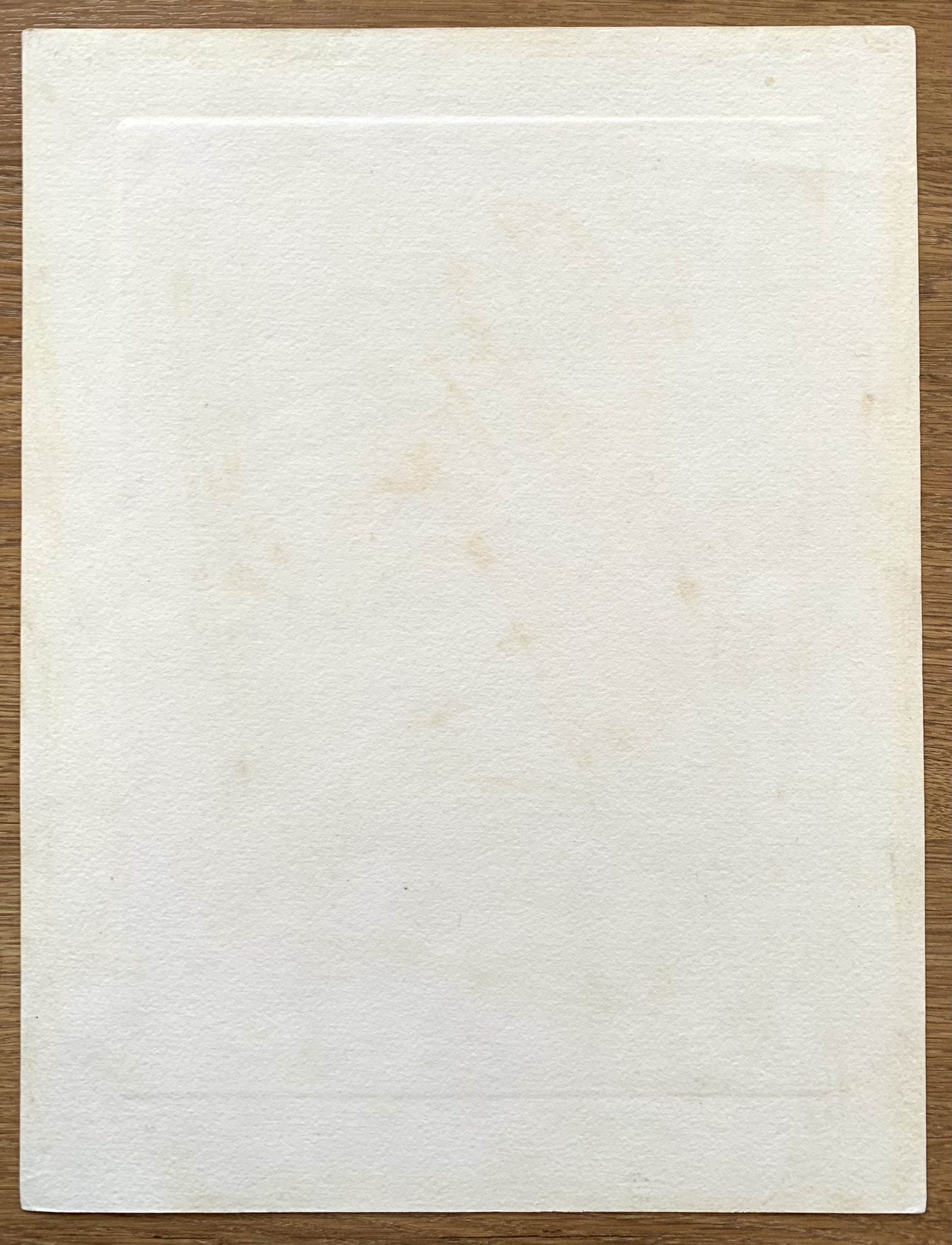 Condition Notes: Light handling crease to upper left corner, 3mm. nick to upper left corner visible upon close inspection; uneven toning, verso, not affecting recto. Unframed.